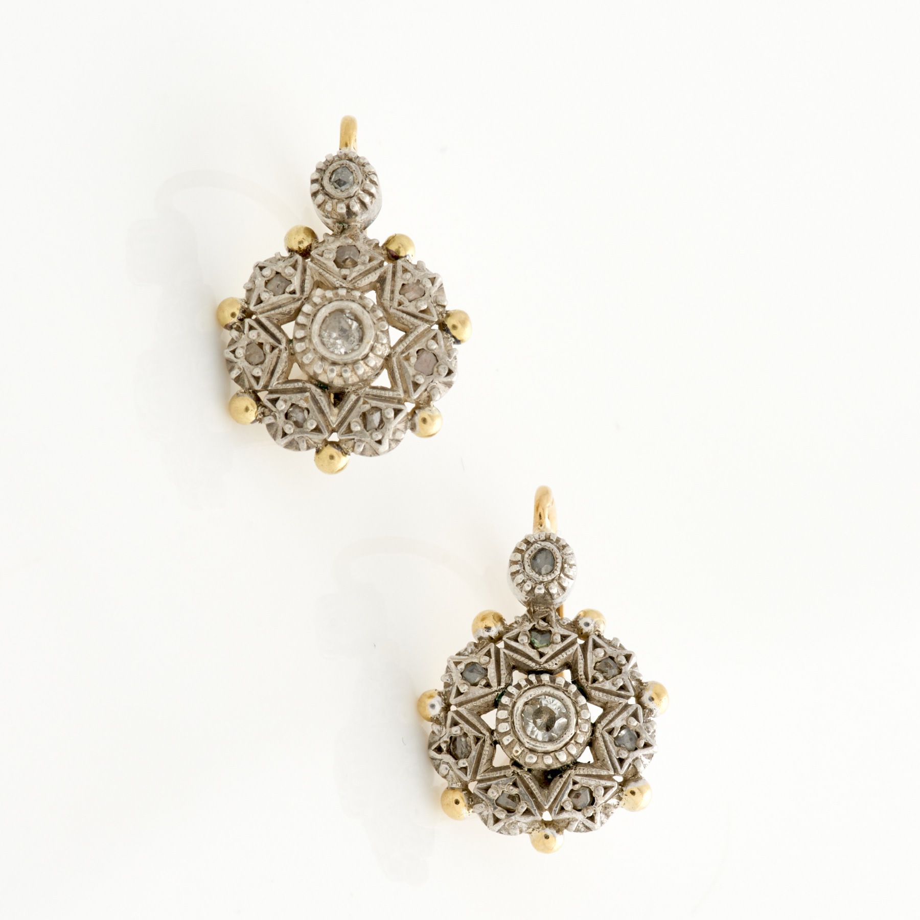 A PAIR OF DIAMOND EARRINGS IN 18CT GOLD AND STERLING SILVER, TO OMEGA CLIP FITTINGS, 7.5GMS