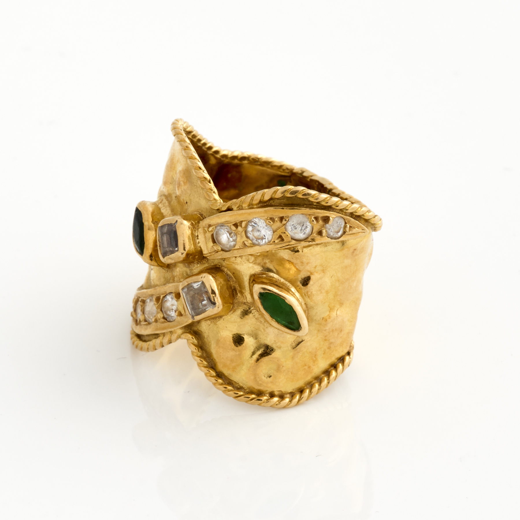 A DIAMOND, SAPPHIRE AND ENAMEL TIGER HEAD MOTIF BROOCH/PENDANT IN 18CT GOLD, 30MM, THE DIAMONDS TOTALLING 2.85CTS, THE YELLOW SAPPHI...