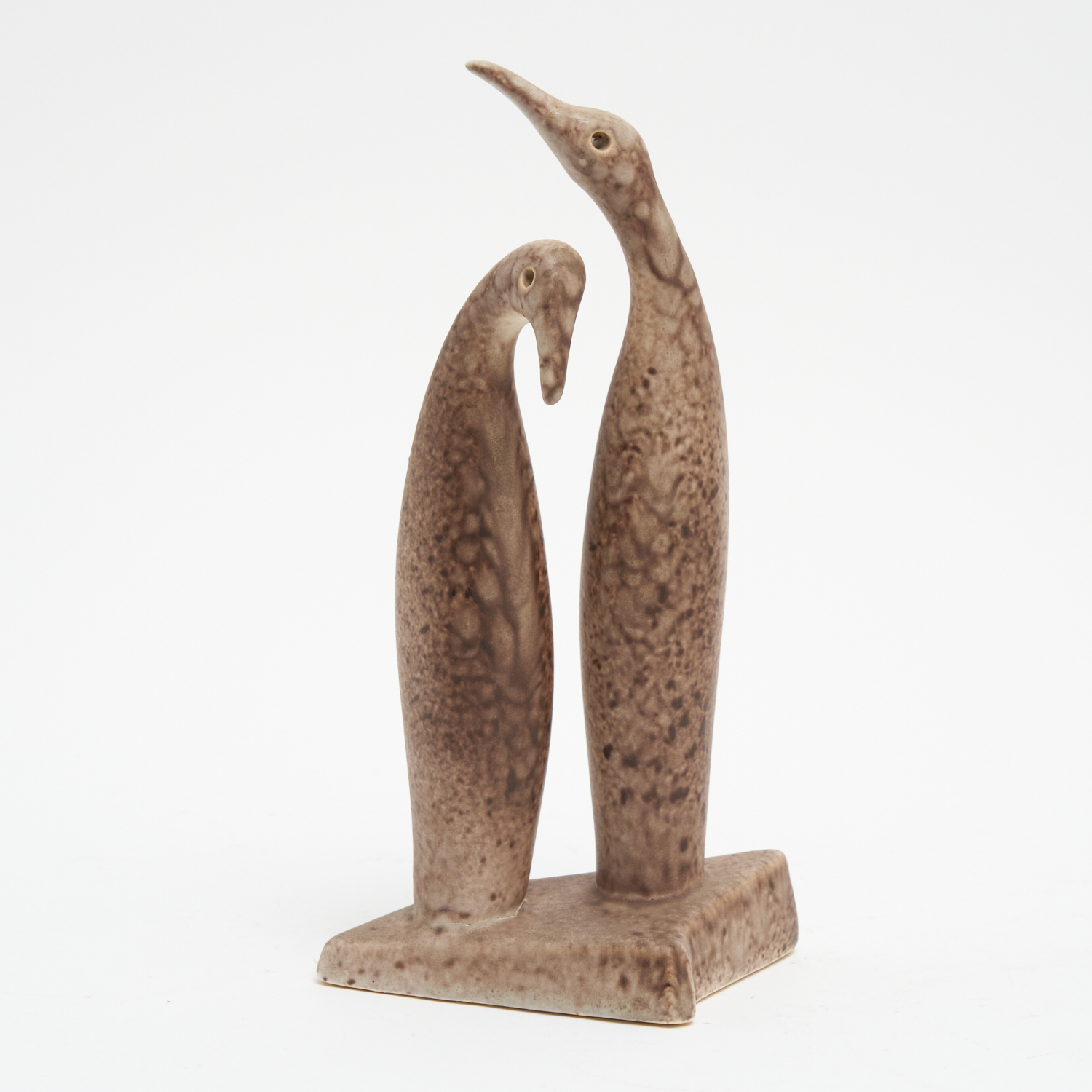 AN ELLIS CERAMIC FIGURINE OF TWO PENGUINS, SIGNED TO BASE (A/F) H.29.5CM
