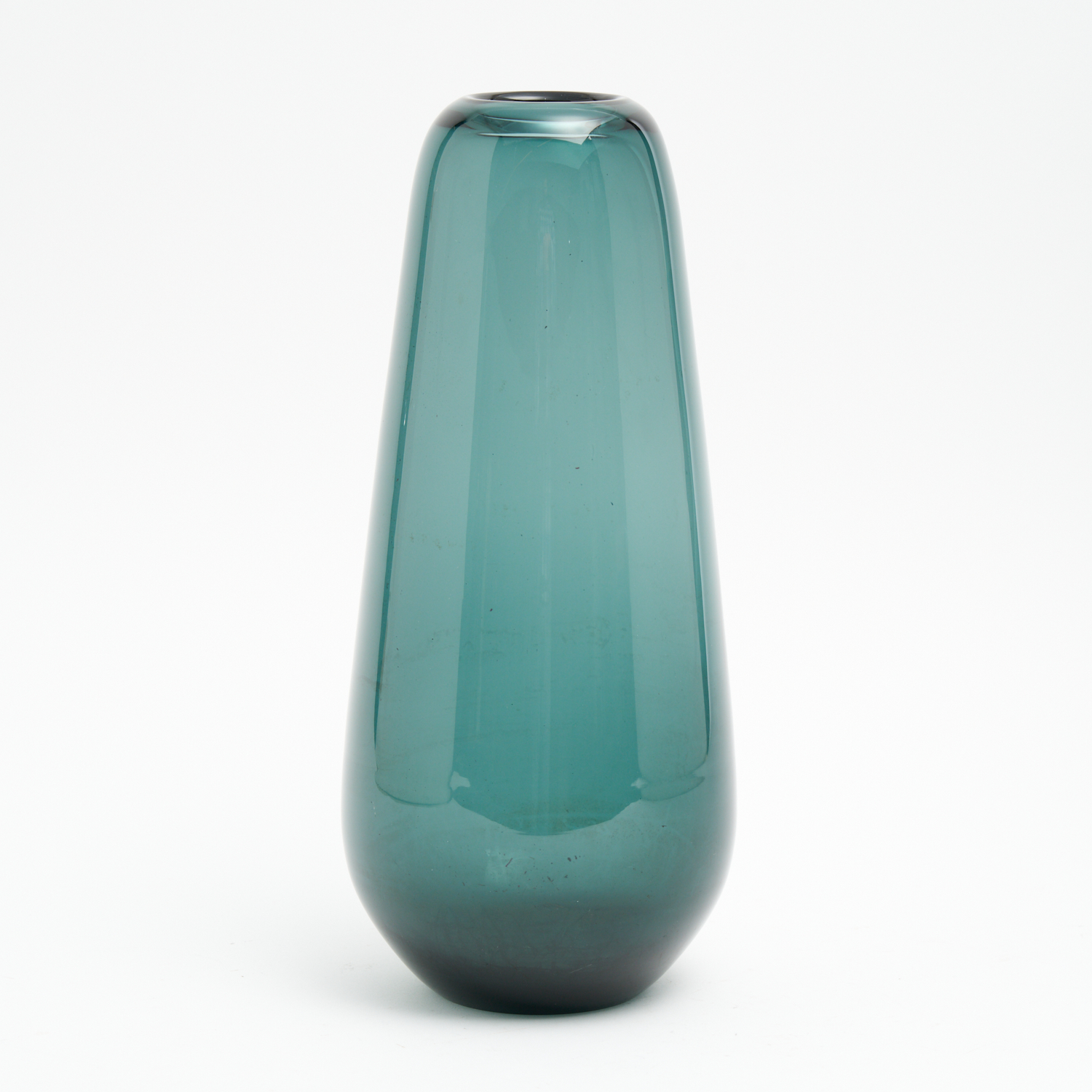 A TALL SMOKEY BLUE ART GLASS VASE H.37CM