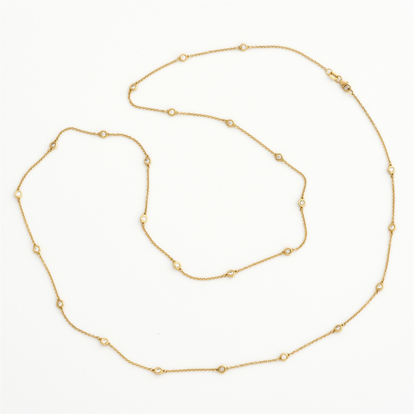 A DIAMOND NECKLACE IN 18CT YELLOW GOLD, THE DIAMONDS TOTALLING APPROXIMATELY 0.75CTS, 780MM, 6.25GMS