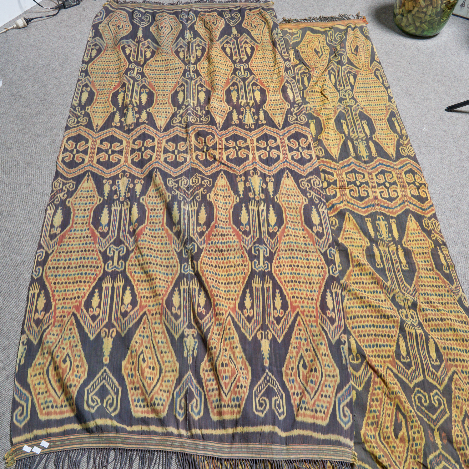 TWO IKAT TEXTILES WITH GECKO PATTERN, FROM SUMBA INDONESIA 252 X 97CM (LARGEST)