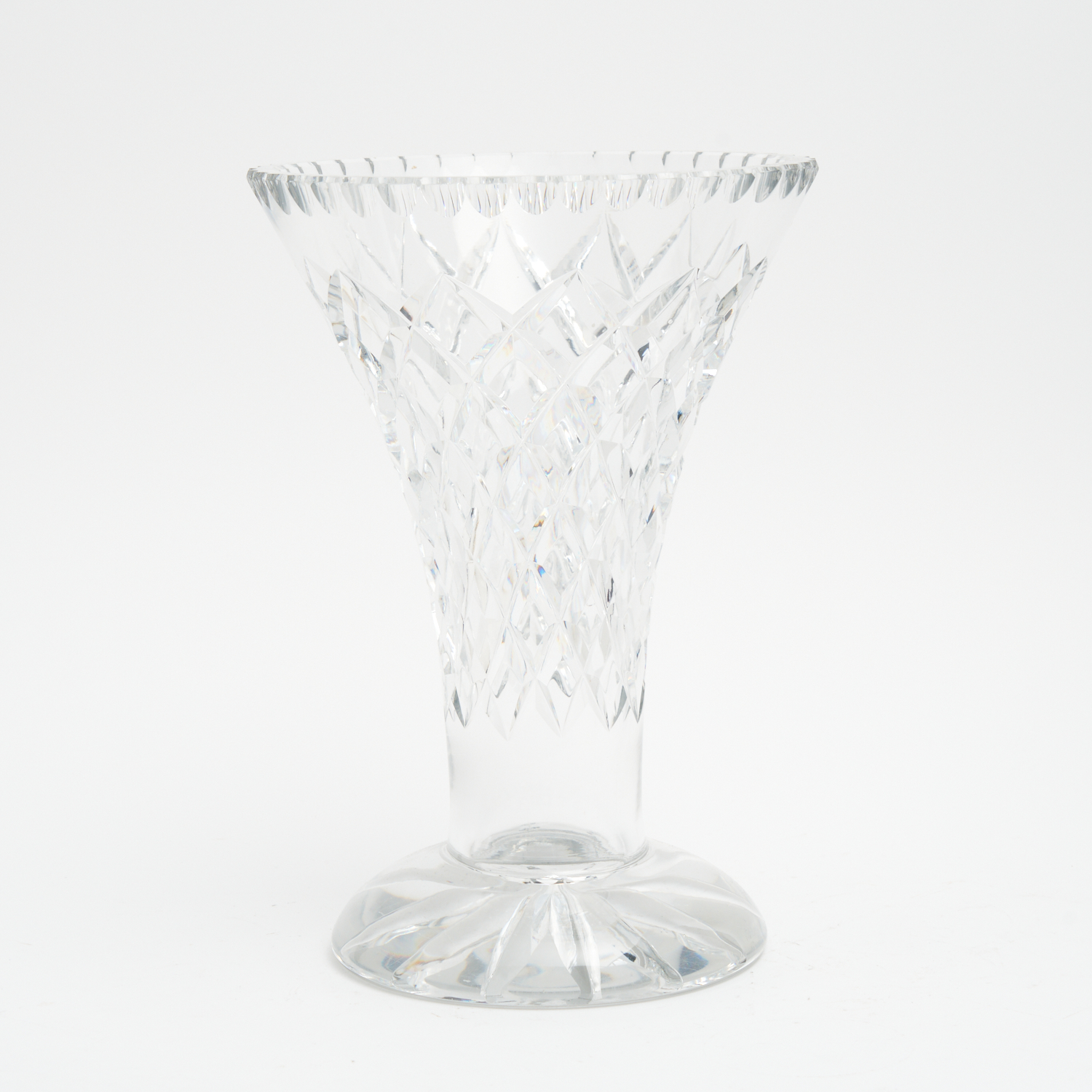 A LARGE AND HEAVY VINTAGE ENGLISH CUT CRYSTAL VASE H.30CM