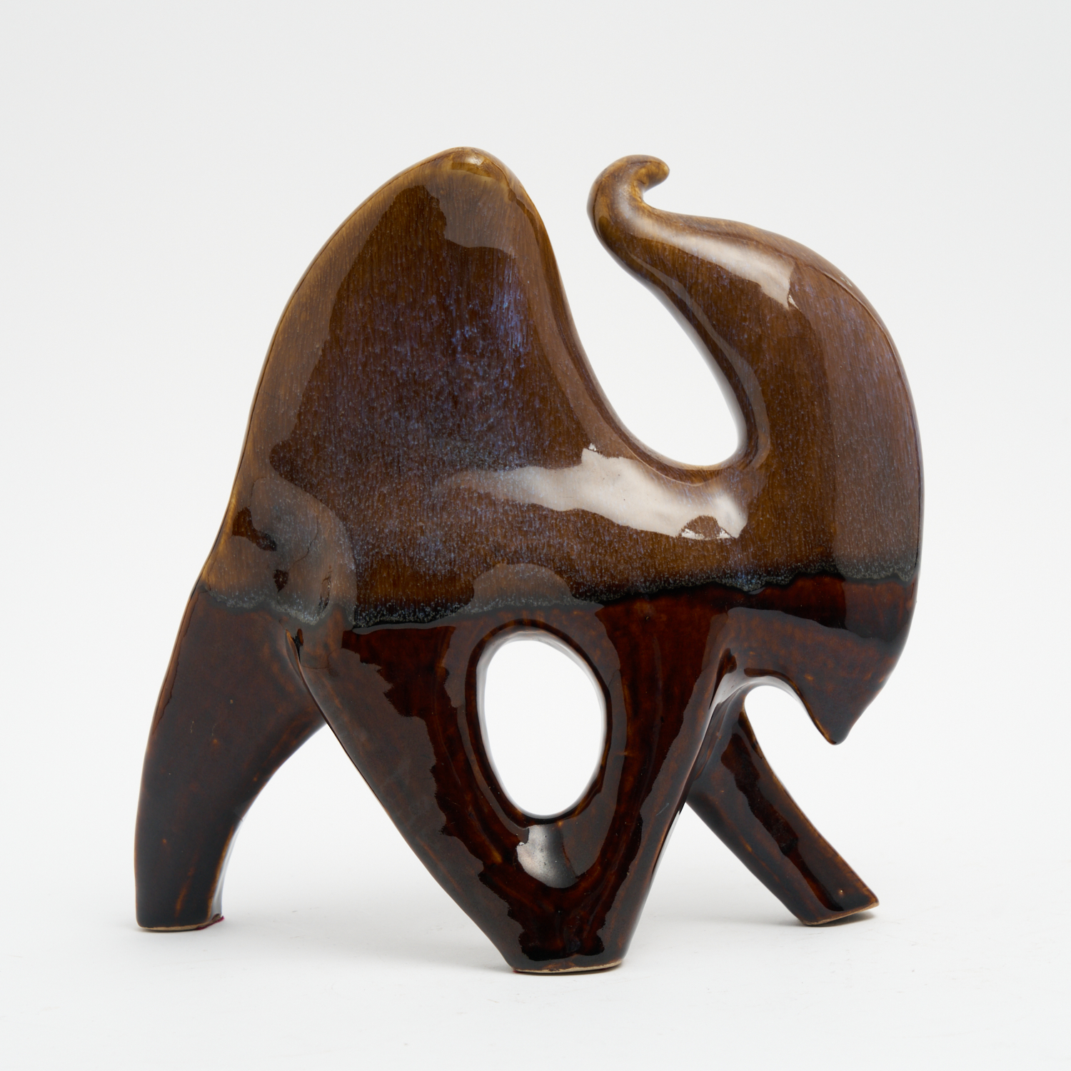 A POTTERY GLAZED CAMEL FIGURE, IMPRESSED MODEL NUMBER 87 TO BASE H.28CM