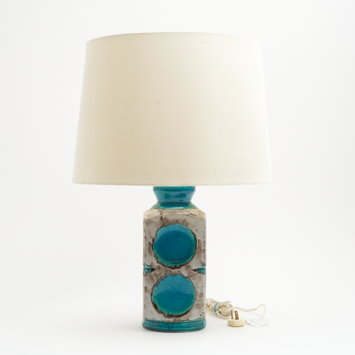 A WEST GERMAN TURQUOISE AND CREAM GLAZED POTTERY TABLE LAMP H.55CM