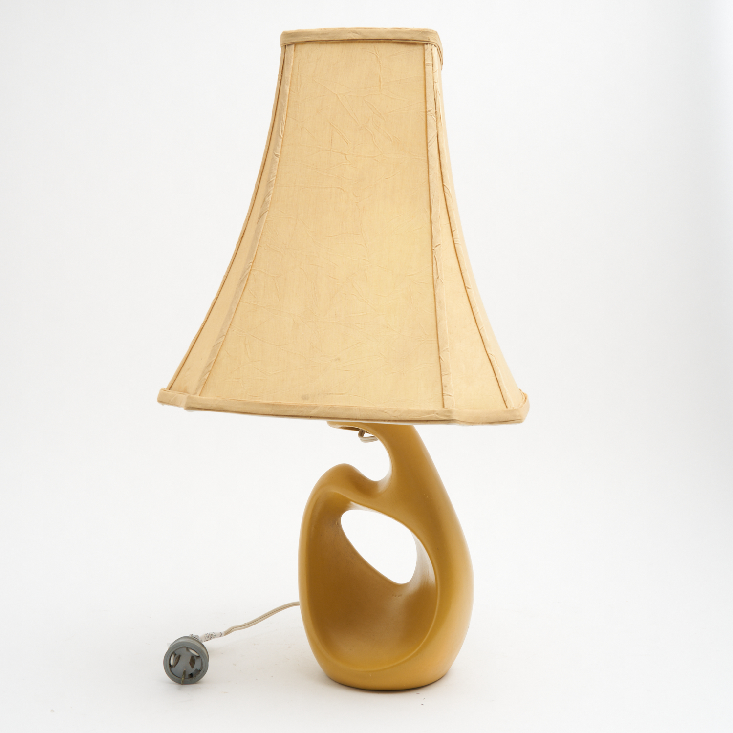 A MUSTARD COLOURED ELLIS STYLE POTTERY TABLE LAMP H.59CM