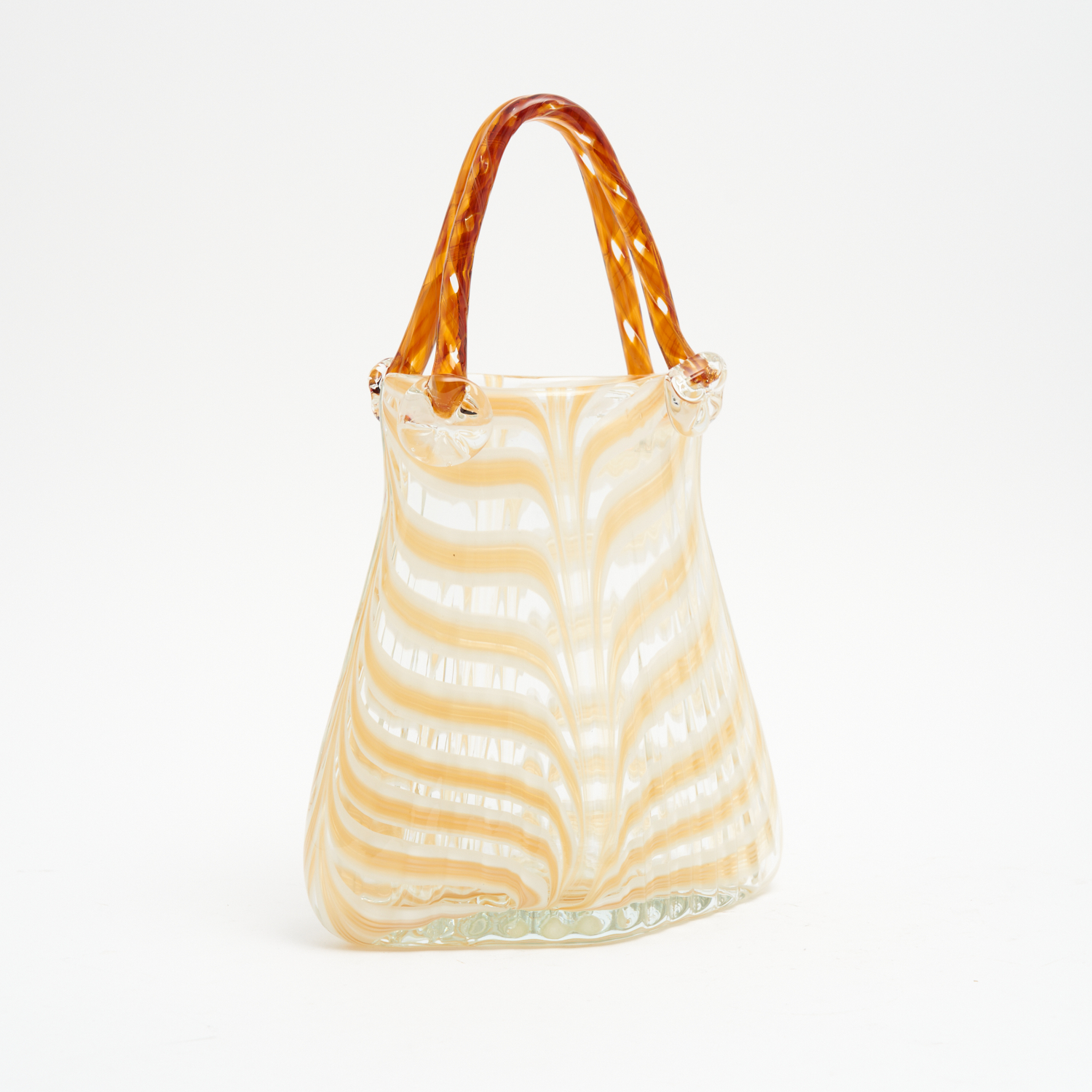 AN ITALIAN GLASS BASKET FORM VASE H.36CM