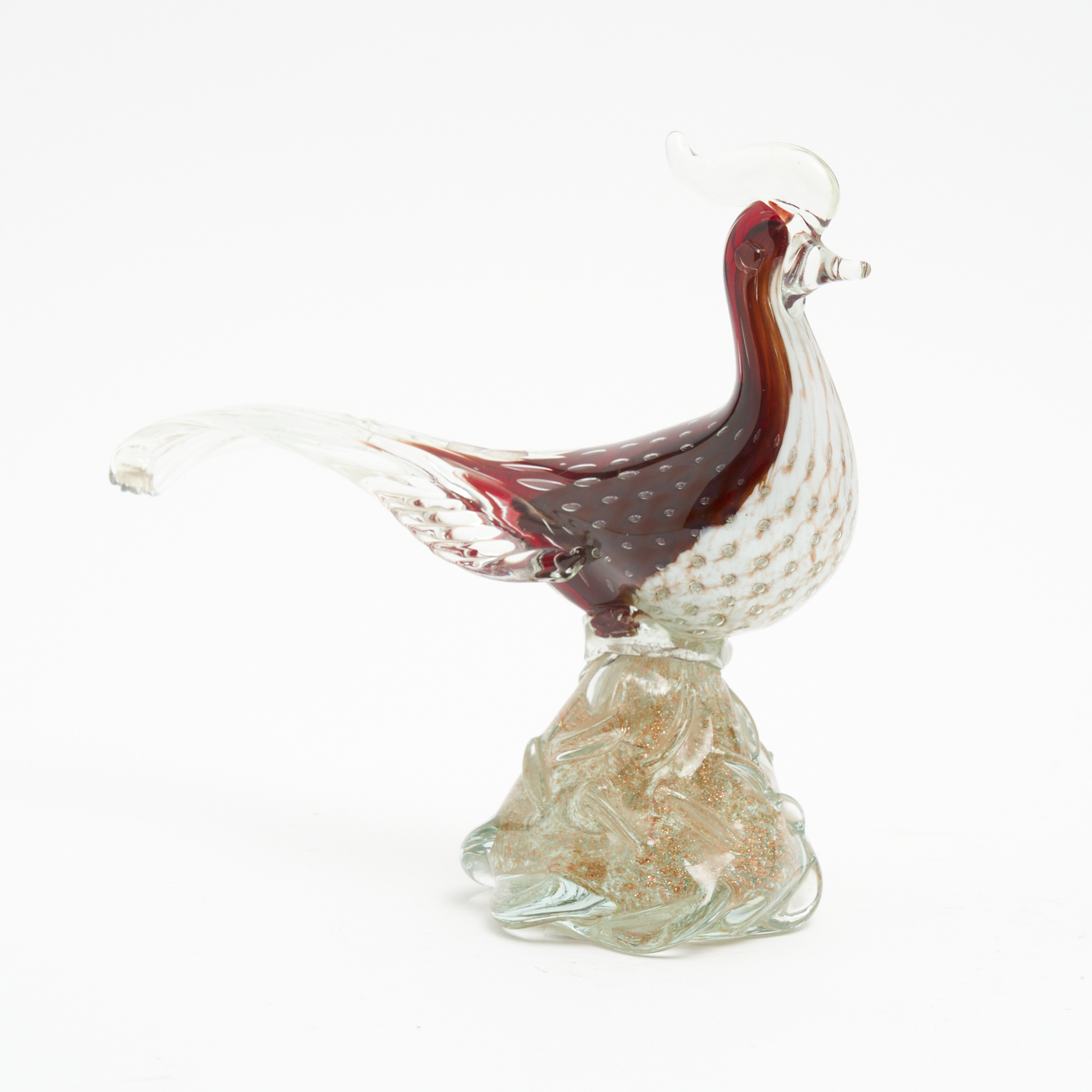 AN ITALIAN GLASS BIRD FIGURE WITH GOLD FOIL INCLUSIONS H.22CM