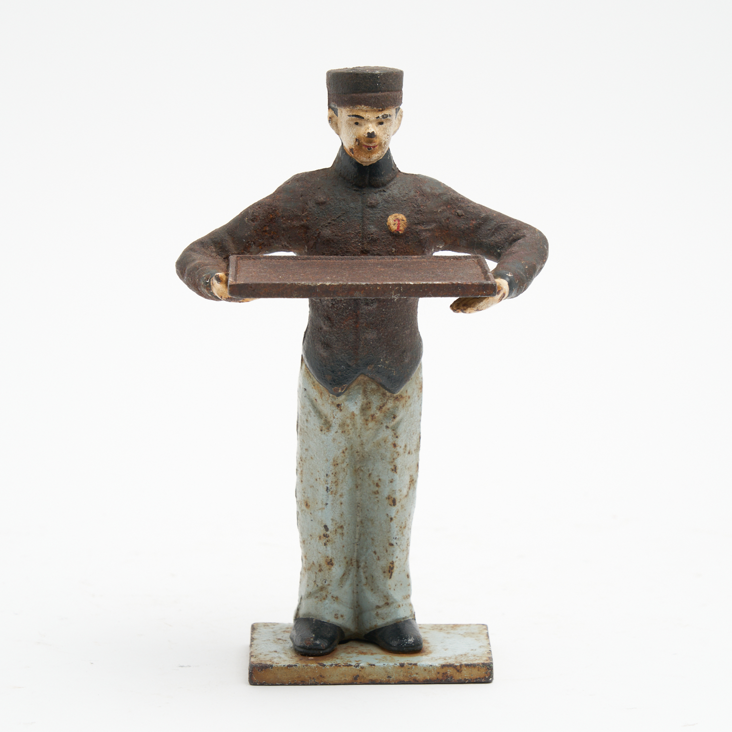 A PAINTED CAST-IRON PORTER CARD HOLDER H.22CM