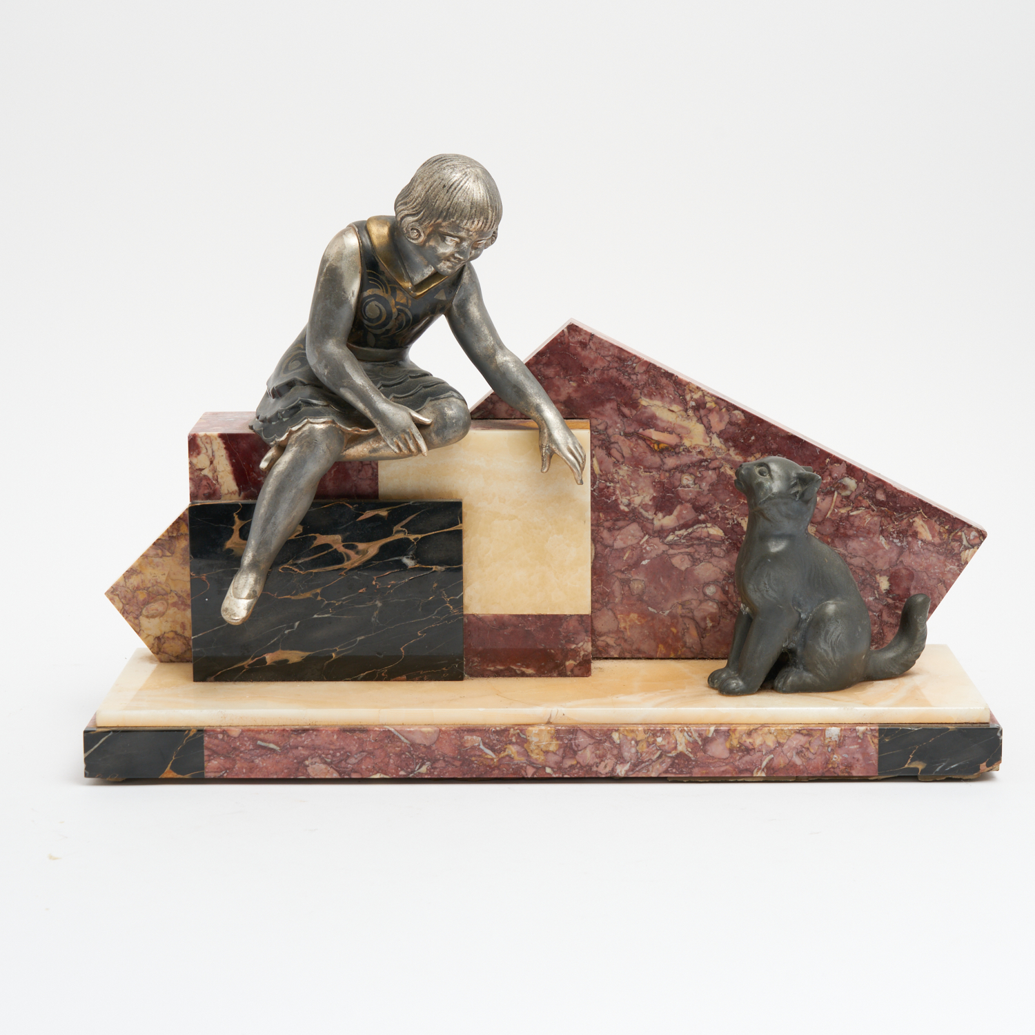 AN ART DECO CAST METAL AND MARBLE STATUE, SIGNED BY UGO CIPRIANI (A/F) L.45CM