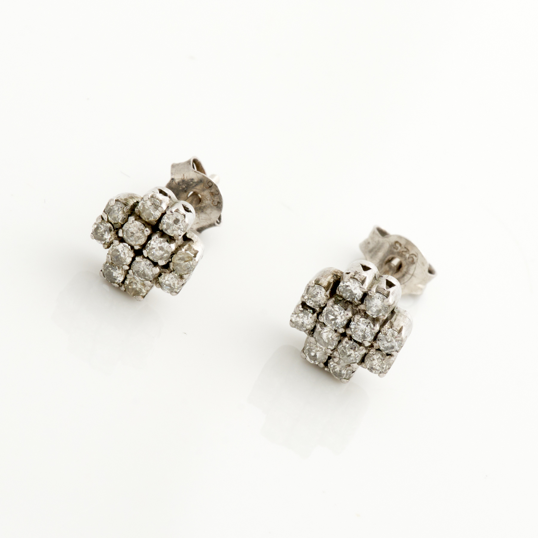 A PAIR OF DIAMONDS STUDS IN 9CT WHITE GOLD, TO POST AND BUTTERFLY FITTINGS, 8MM X 8MM, 1.7GMS