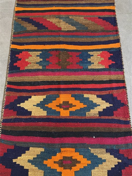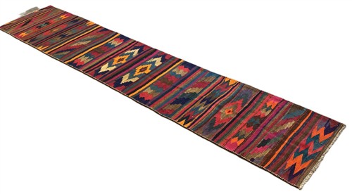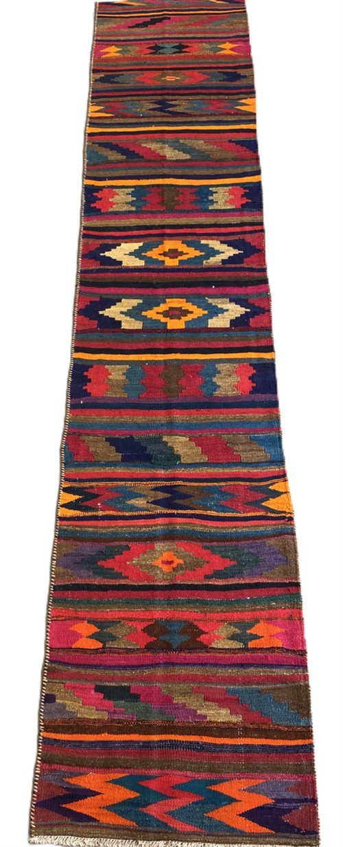 AN EXTRA-LONG & COLOURFUL PERSIAN QASHQAI KILIM (440 X 85 CM)