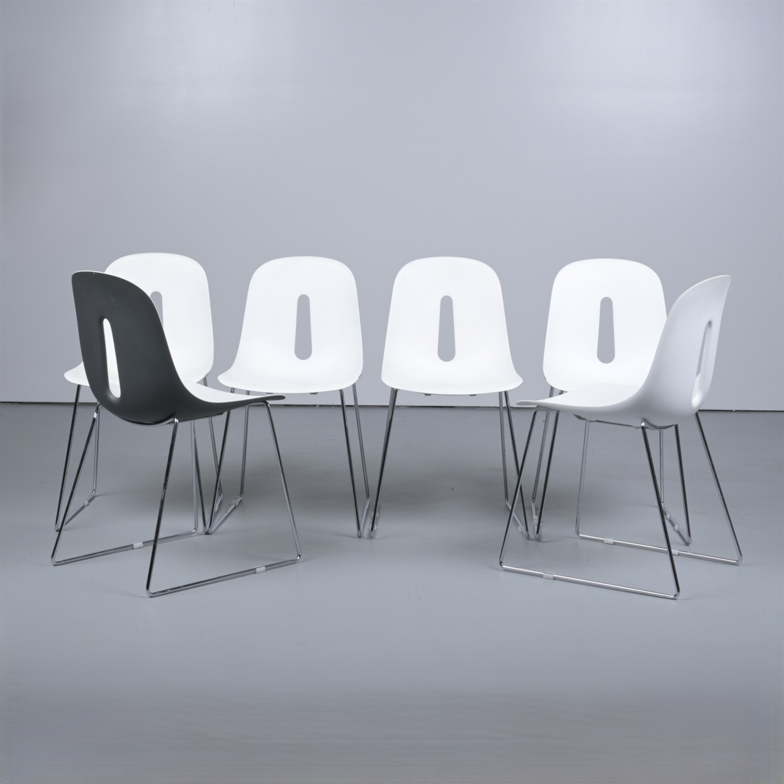 A GROUP OF SIX ITALIAN CHAIRS FOR DARIO DELPIN (A/F) (84CM H X 40CM W X 49CM D)