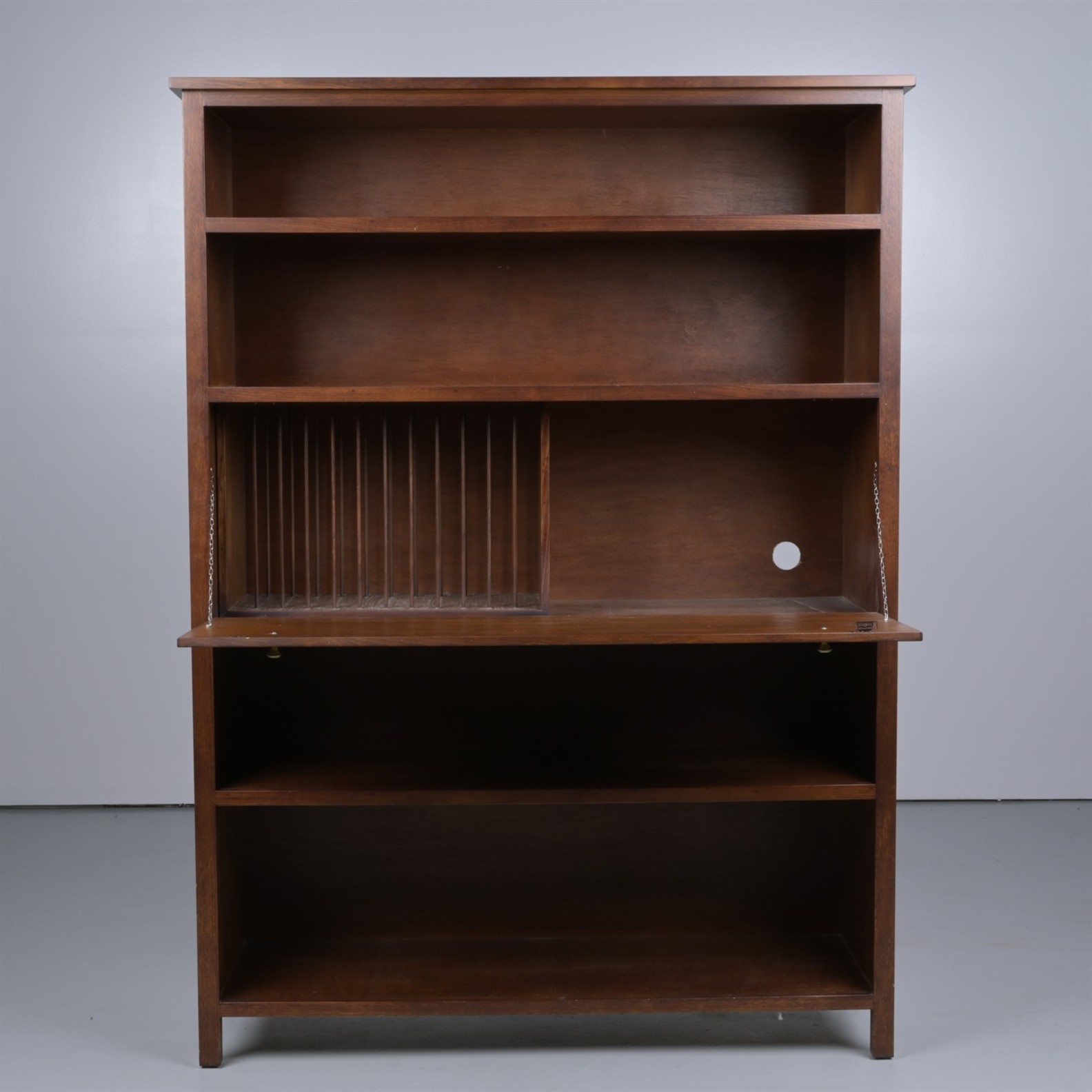 A CUSTOM HARDWOOD RECORD CABINET (196CM H X 140CM W X45CM D) (THIS ITEM MUST BE REMOVED BY PROFESSIONAL CARRIERS OR CLIENTS. LEONARD JOEL STAFF CANNOT ASSIST WITH CARRYING OR DELIVERY OF THIS ITEM)