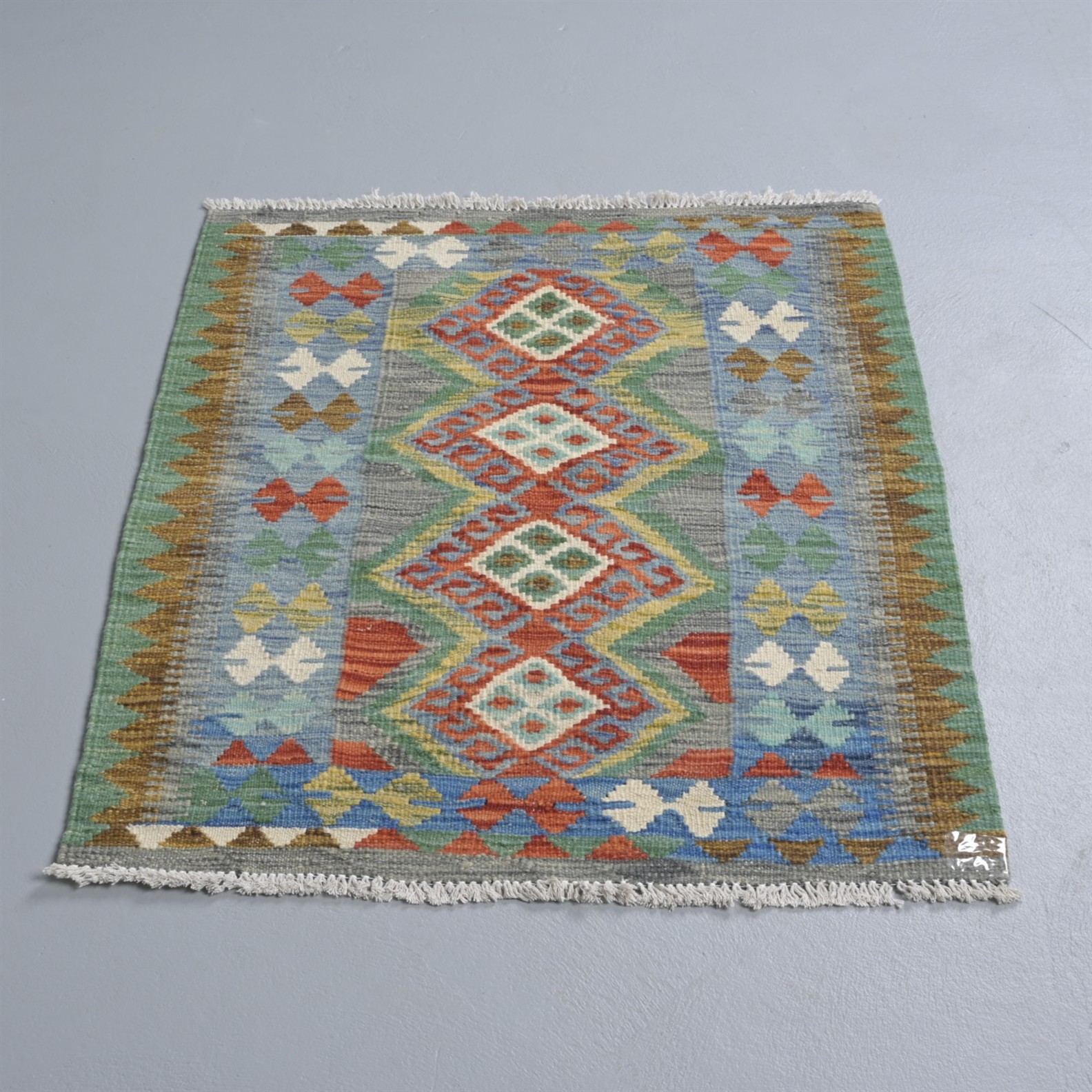 A SMALL AFGHAN HANDSPUN WOOLLEN SCATTER RUG, MADE WITH VEGETABLE DYES (114CM H X 86CM W)