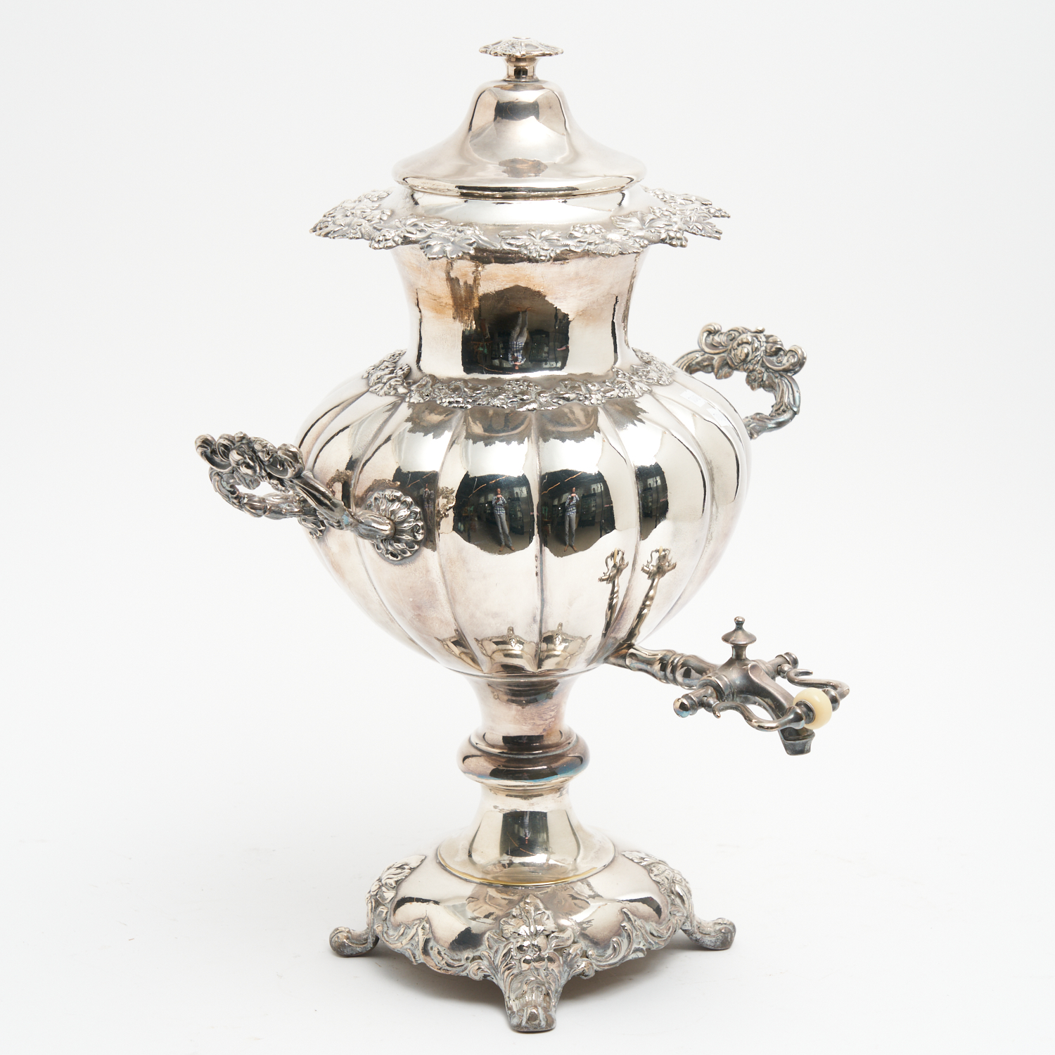 A SILVER PLATE SAMOVAR WITH A FLUTED BODY H.48CM