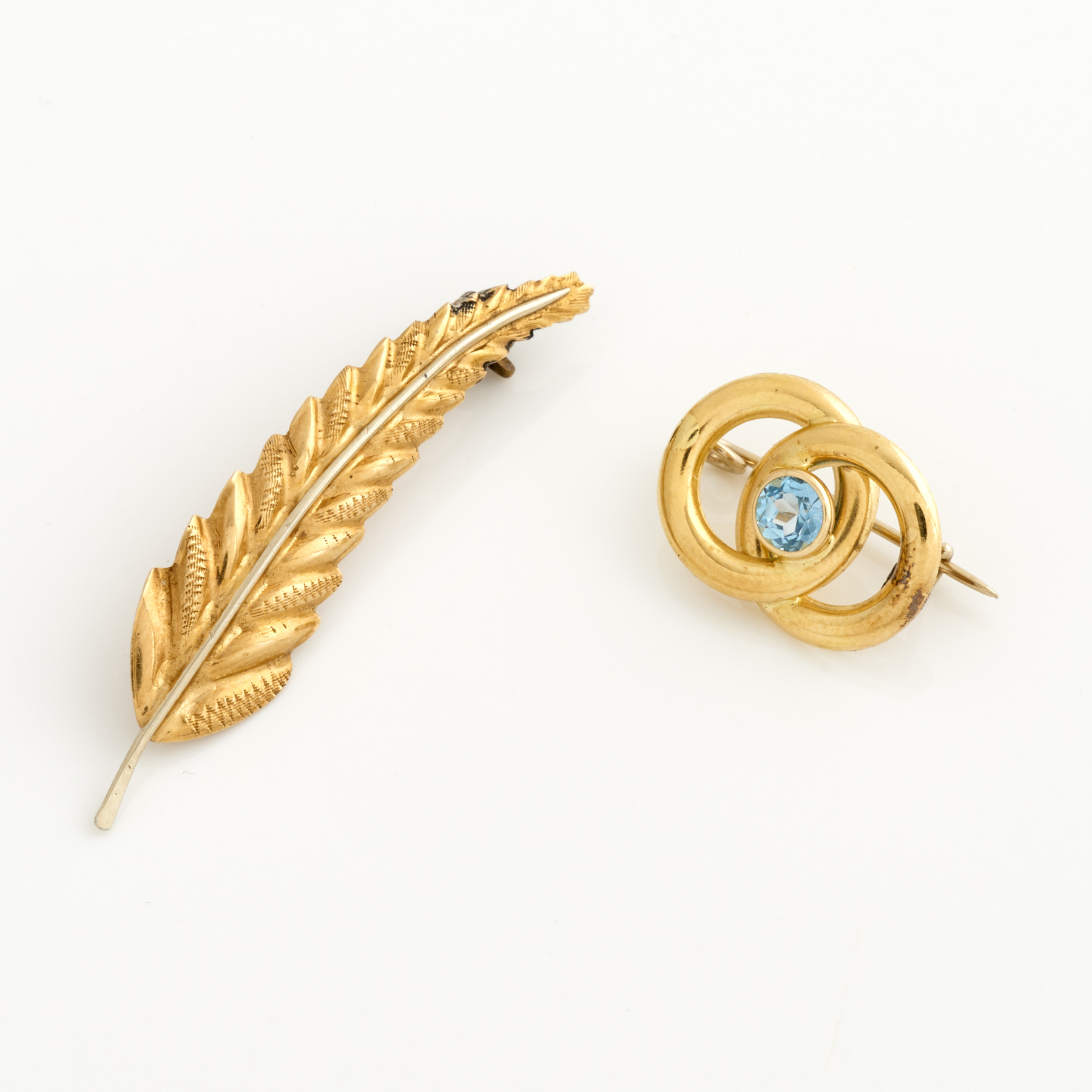 A PAIR OF BROOCHES IN 18CT GOLD, THE LARGEST MEASURING 50MM, TOTAL WEIGHT 4.94GMS