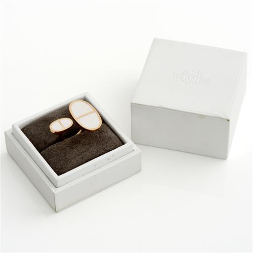 HERMES, A CHAINE D'ANCRE VERSO ENAMEL RING IN 18CT GOLD, SIZE K, 13.9GMS, ACCOMPANIED BY A BOX