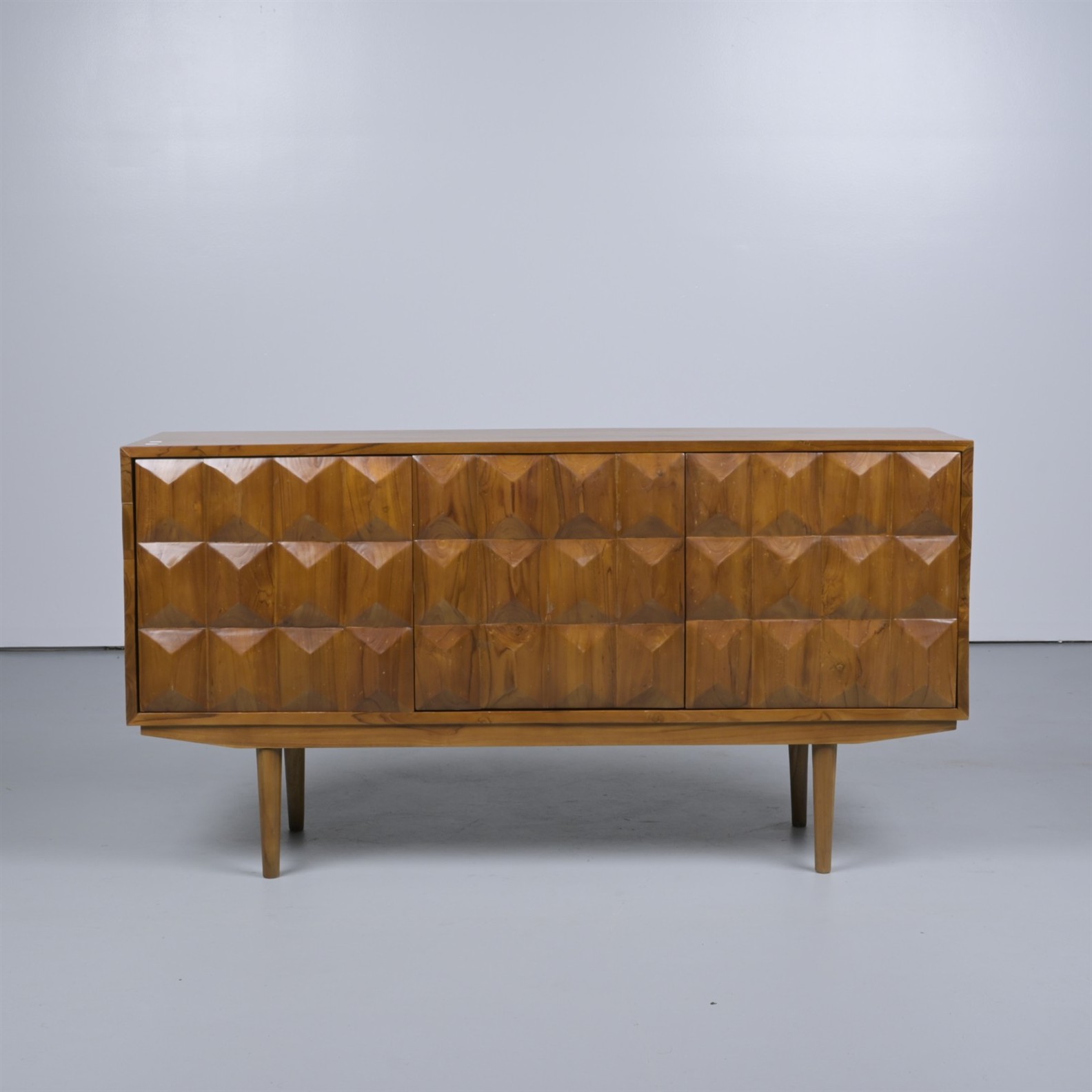 A CONTEMPORARY TEAK SIDEBOARD (79CM H X 149CM W X 40CM D) (THIS ITEM MUST BE REMOVED BY PROFESSIONAL CARRIERS OR CLIENTS. LEONARD JOEL STAFF CANNOT ASSIST WITH CARRYING OR DELIVERY OF THIS ITEM)