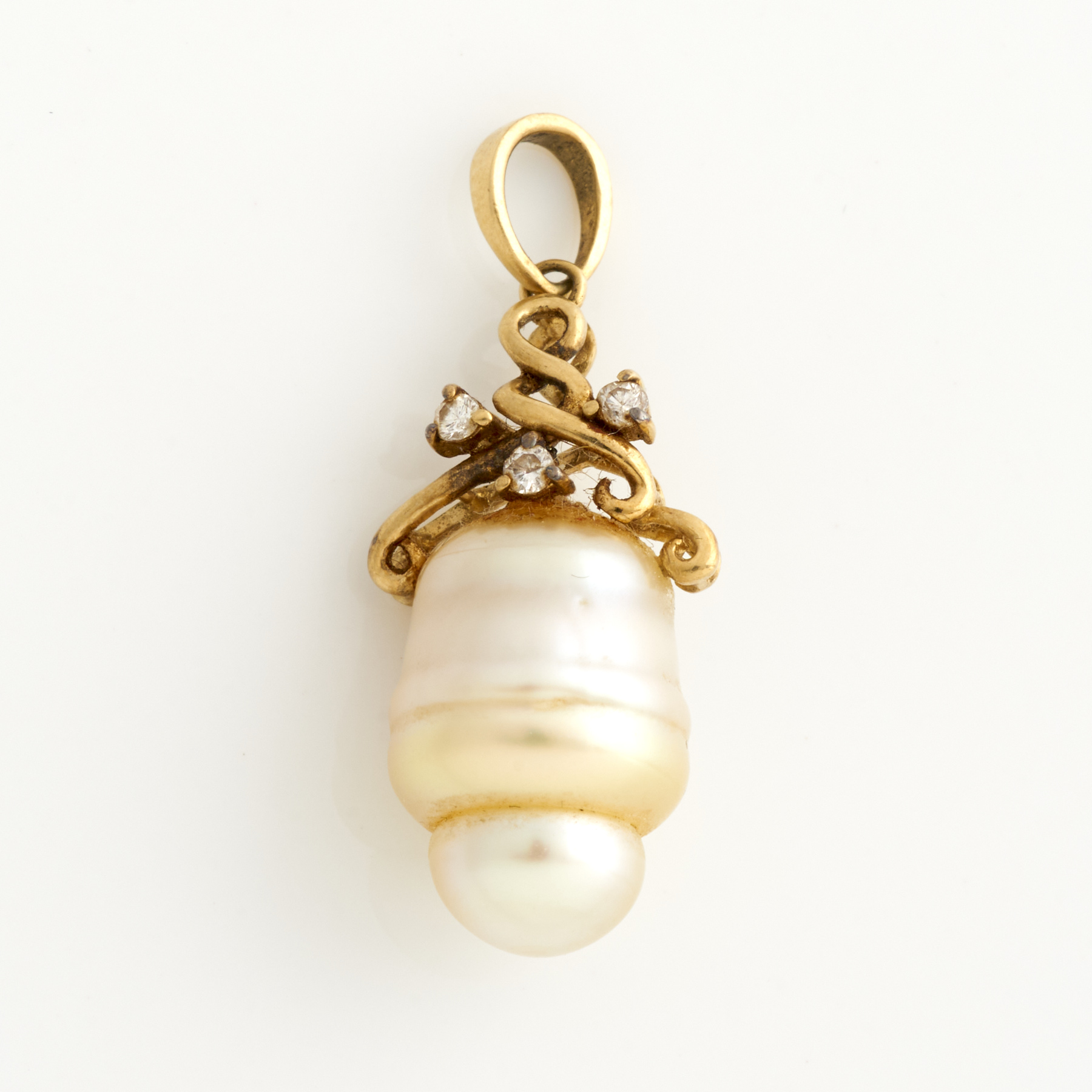A PEARL AND DIAMOND PENDANT IN 18CT GOLD, 30MM X 15MM, 2.8GMS