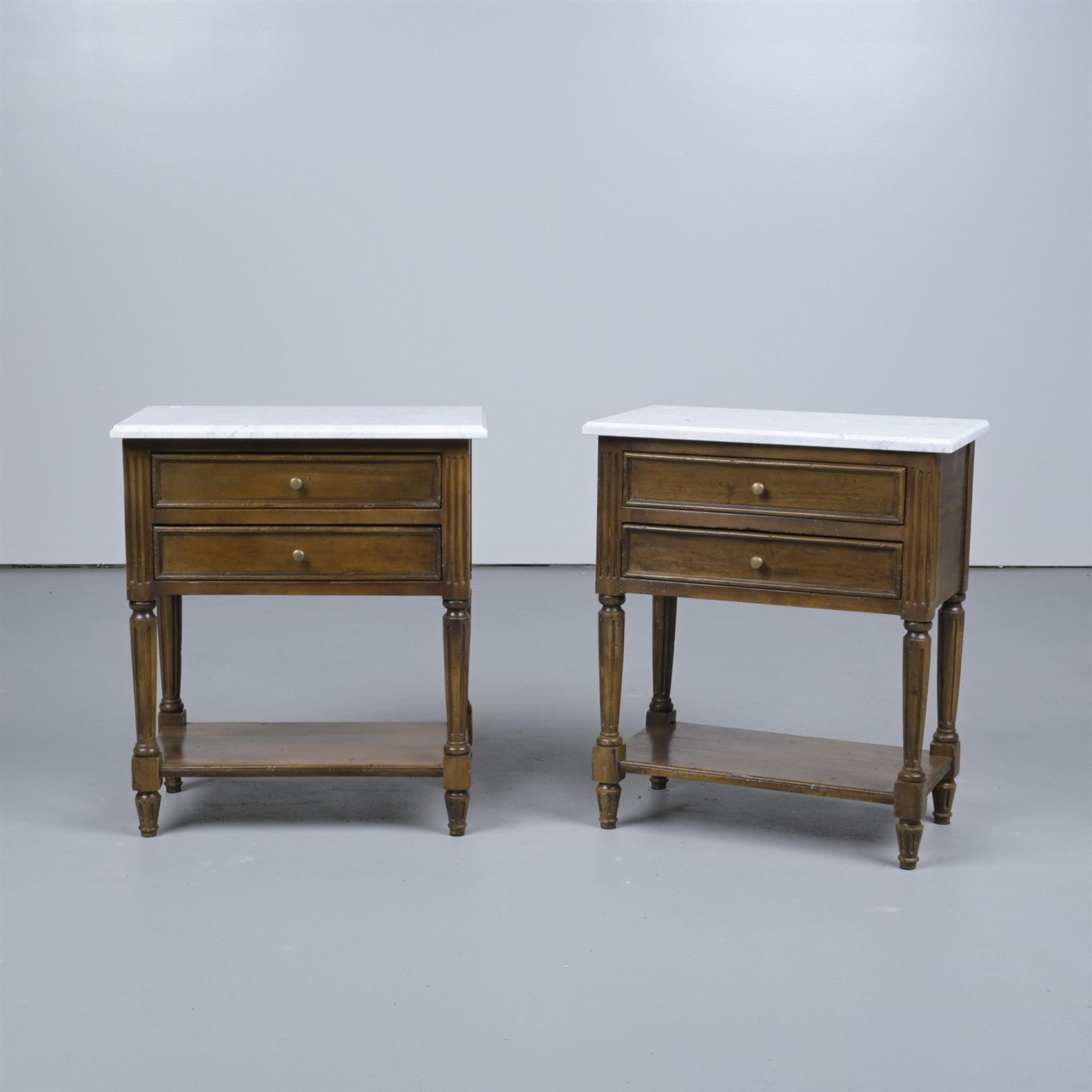 A PAIR OF FRENCH LOUIS XVI-STYLE SIDE TABLES WITH MARBLE TOP (70CM H X 60CM W X 36CM D)