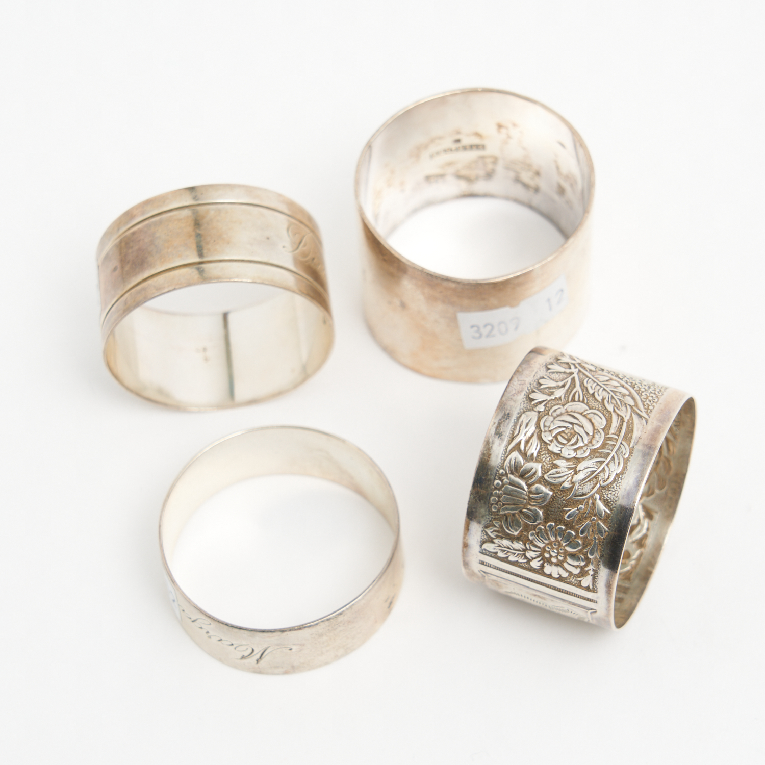 FOUR STERLING SILVER NAPKIN RINGS 114G 3.3CM