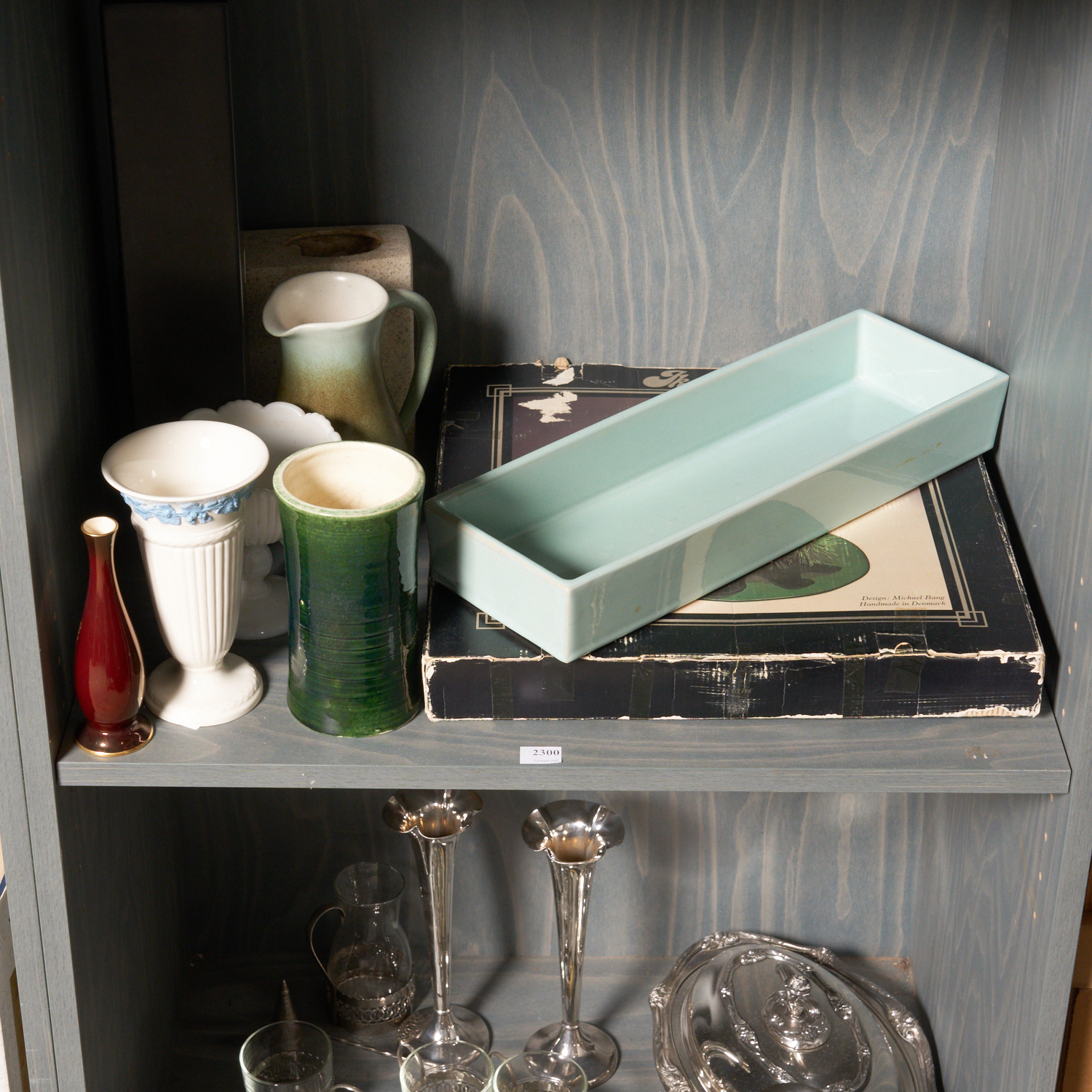 A RANGE OF VASES INCLUDING IKEBANA AND EARLIER ENGLISH EXAMPLES H.40CM (TALLEST)