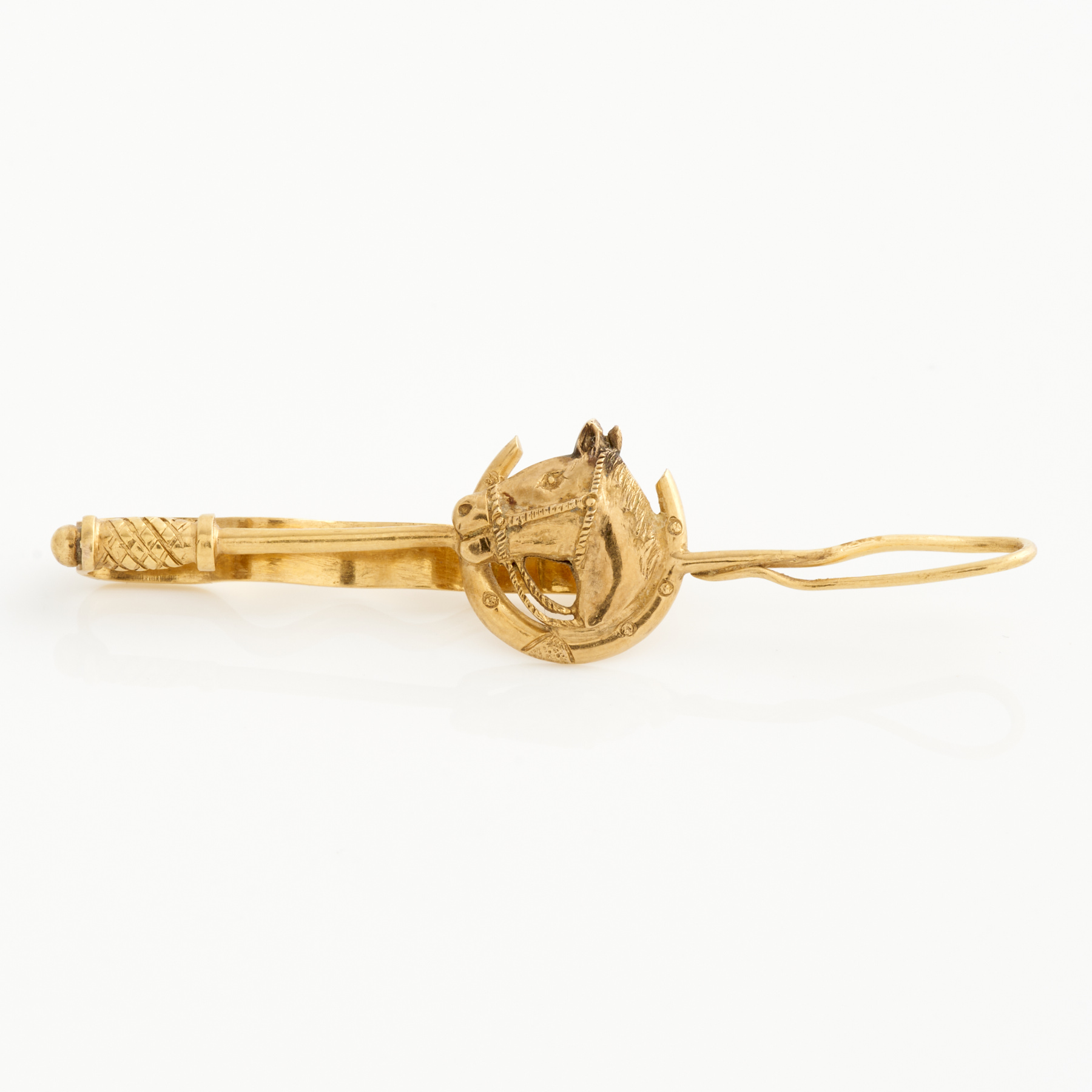 AN EQUESTRIAN TIE CLIP IN 18CT GOLD, 60MM, 4.5GMS