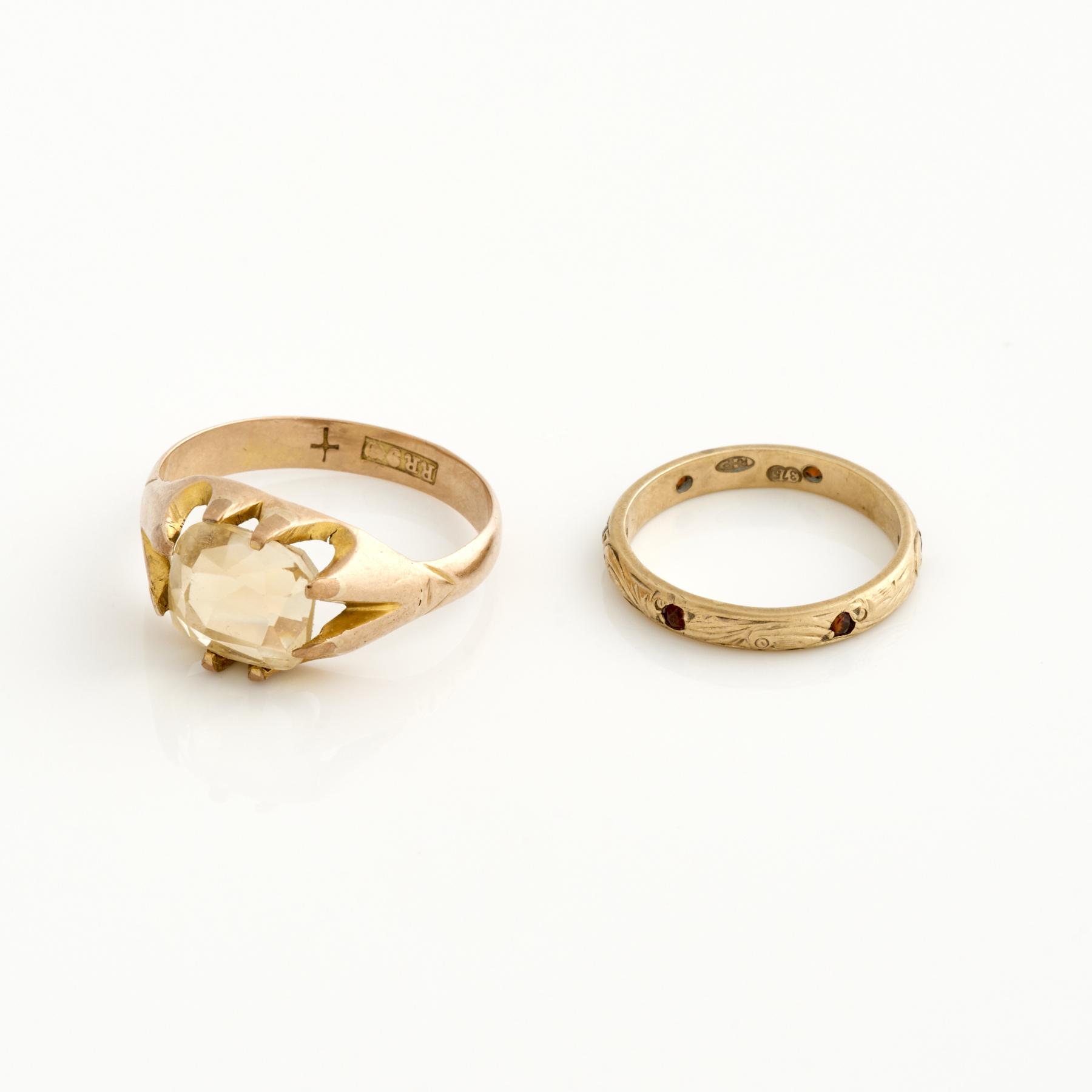 A PAIR OF GEM SET RINGS IN 9CT GOLD, SIZES K AND O, TOTAL WEIGHT 5.1GMS