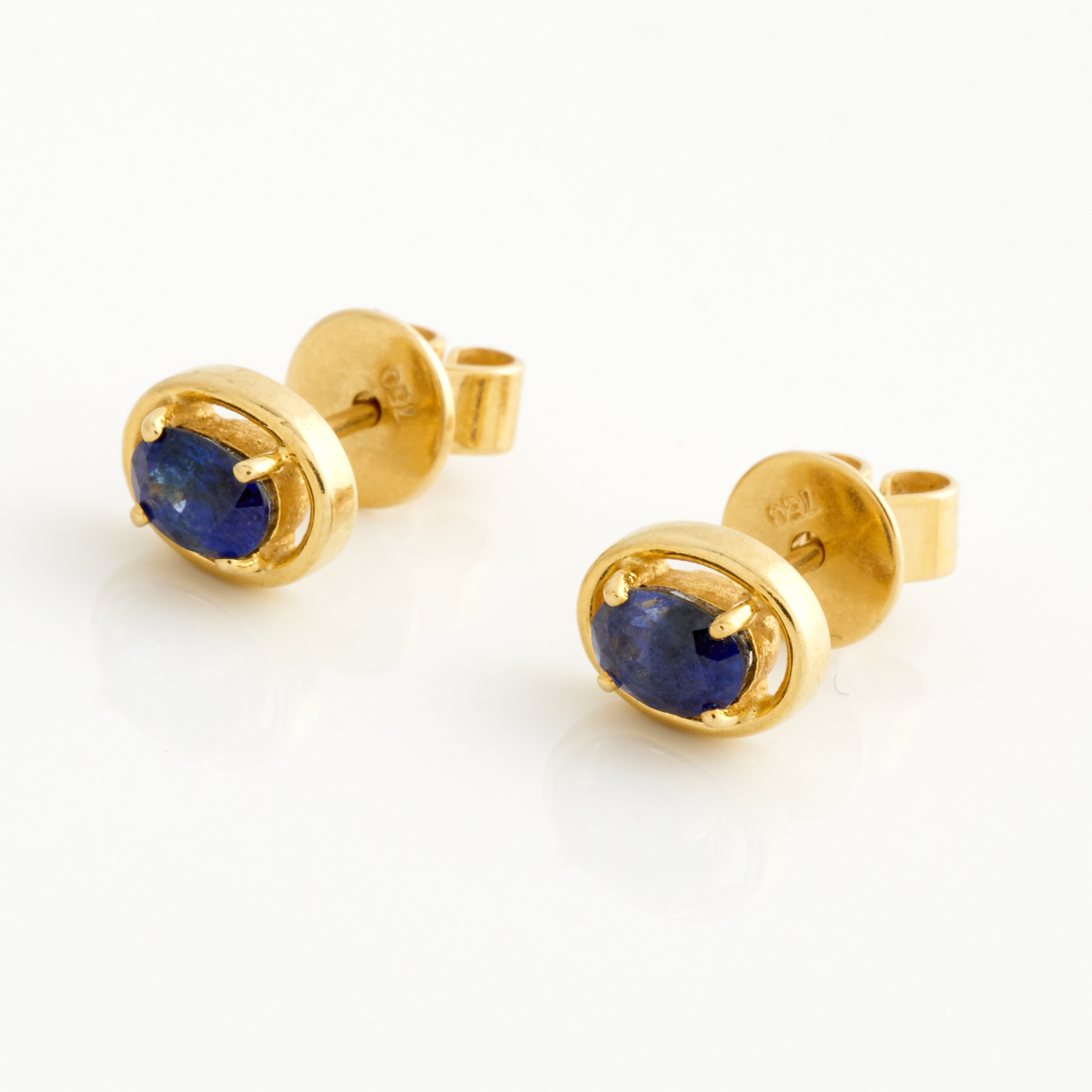 A PAIR OF SAPPHIRE EARRINGS IN 18CT GOLD, TO POST AND BUTTERFLY, 3.07GMS