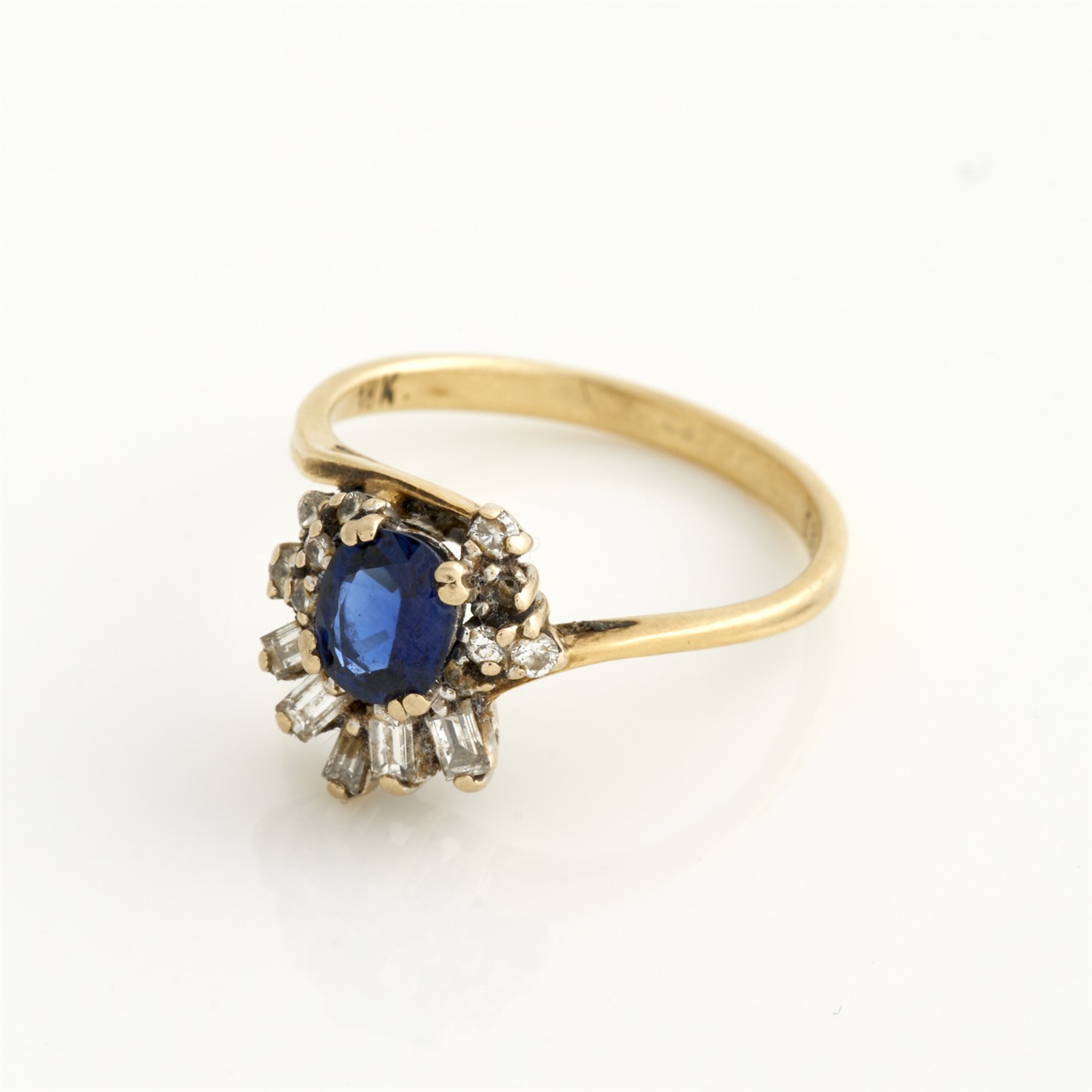 A SAPPHIRE AND DIAMOND RING IN 18CT GOLD, SIZE N, 3.14GMS