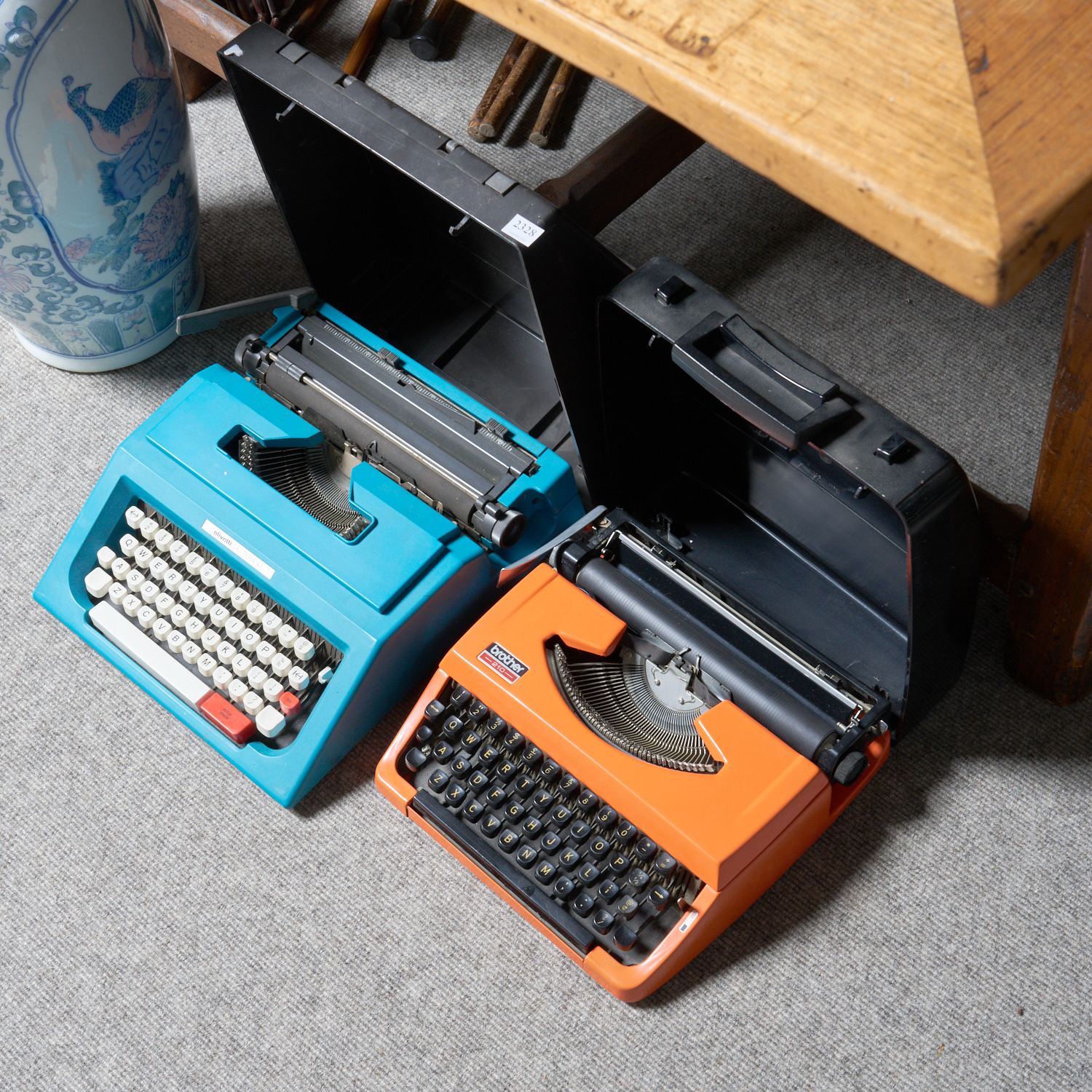 TWO VINTAGE TYPEWRITERS INCLUDING A BROTHER 210, AND AN OLIVETTI LETTERA 42 W.32.5CM