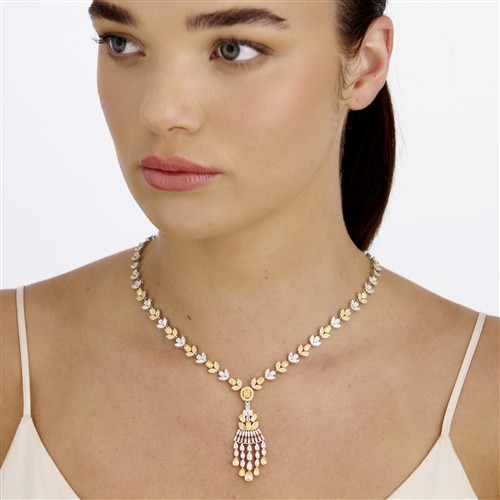 18CT WHITE GOLD AND YELLOW DIAMOND NECKLACE WITH DETACHABLE PENDANT