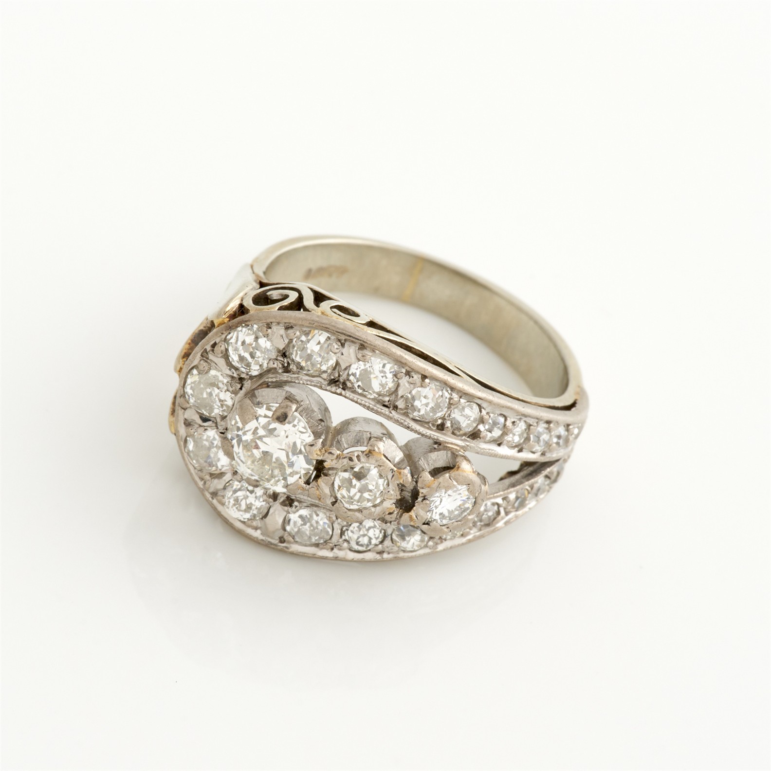 A DIAMOND CLUSTER RING IN 18CT WHITE GOLD, THE DIAMONDS TOTALLING APPROXIMATELY 1.9CTS, SIZE M, 7.16GMS, ACCOMPANIED BY A VALUATION