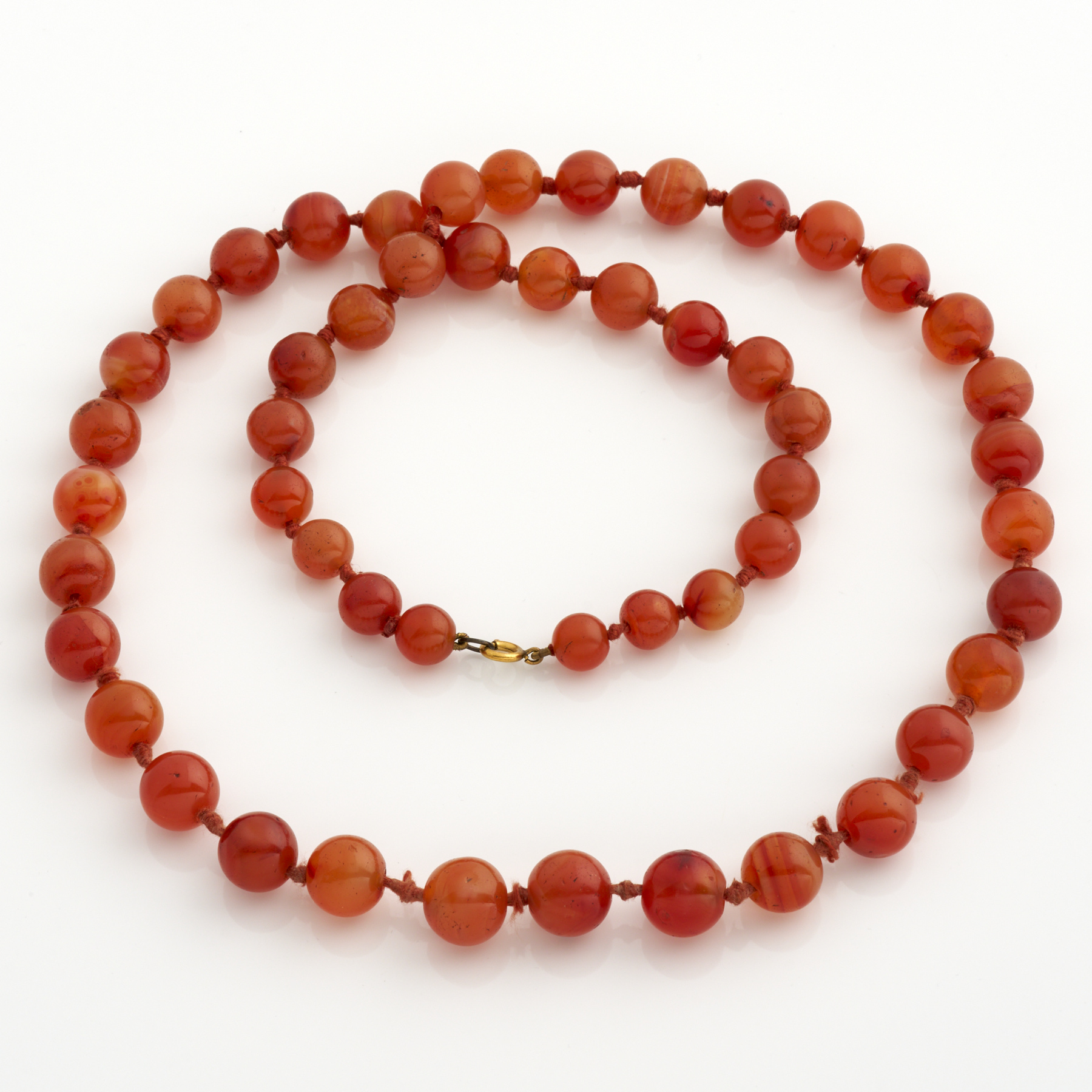 A STRAND OF CARNELIAN BEADS, 880MM