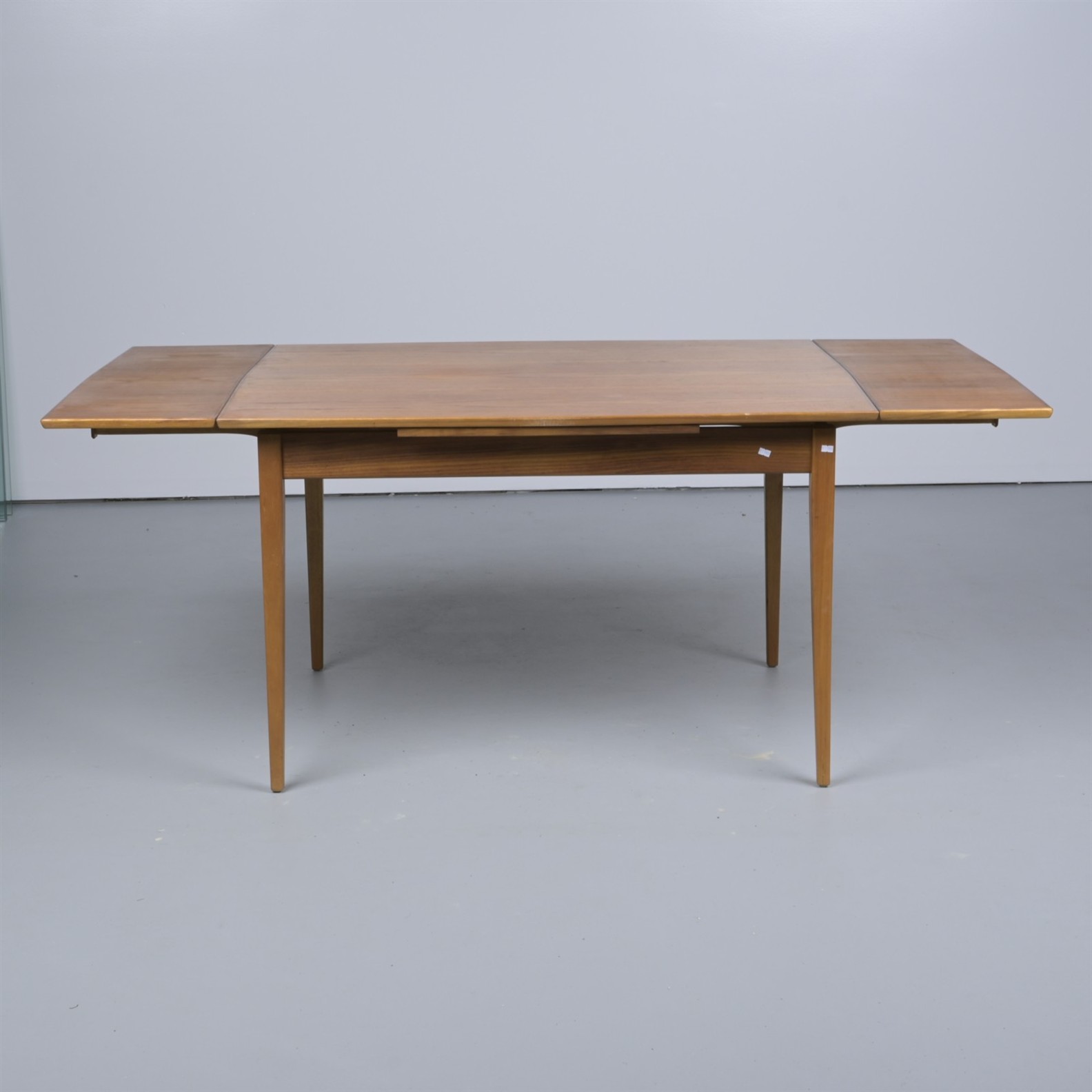 A 1960s CENTURY TEAK DRAW-LEAF EXTENDING DINING TABLE BY JOHN GRIMES (75CM H X 186CM W X 94CM D) (THIS ITEM MUST BE REMOVED BY PROFESSIONAL CARRIERS OR CLIENTS. LEONARD JOEL STAFF CANNOT ASSIST WITH CARRYING OR DELIVERY OF THIS ITEM)