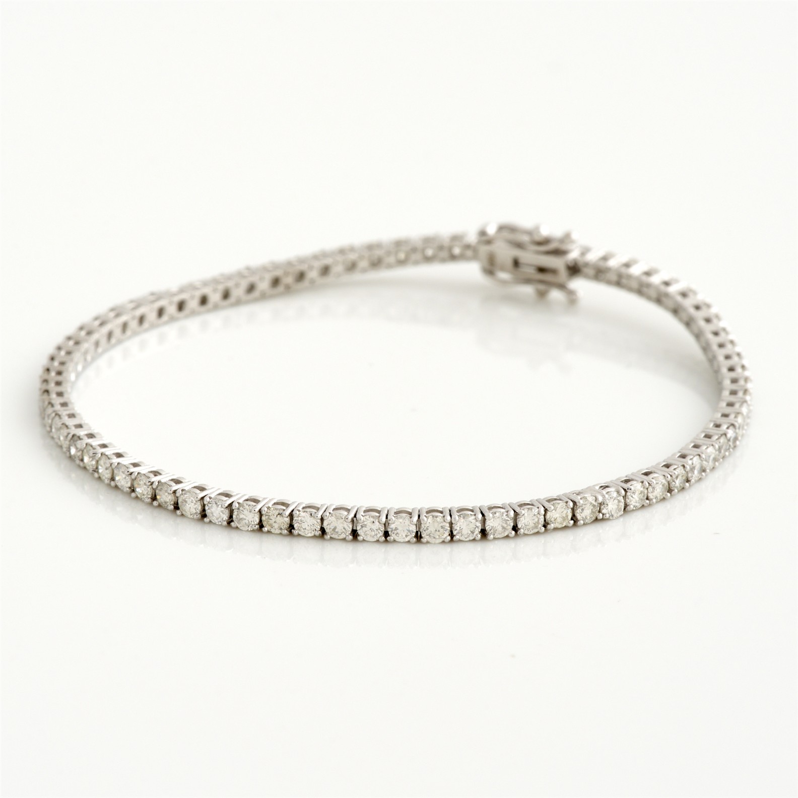 A DIAMOND TENNIS BRACELET IN 18CT WHITE GOLD, THE DIAMONDS TOTALLING APPROXIMATELY 2.60CTS, 175MM, 6.93GMS, ACCOMPANIED BY A VALUATION