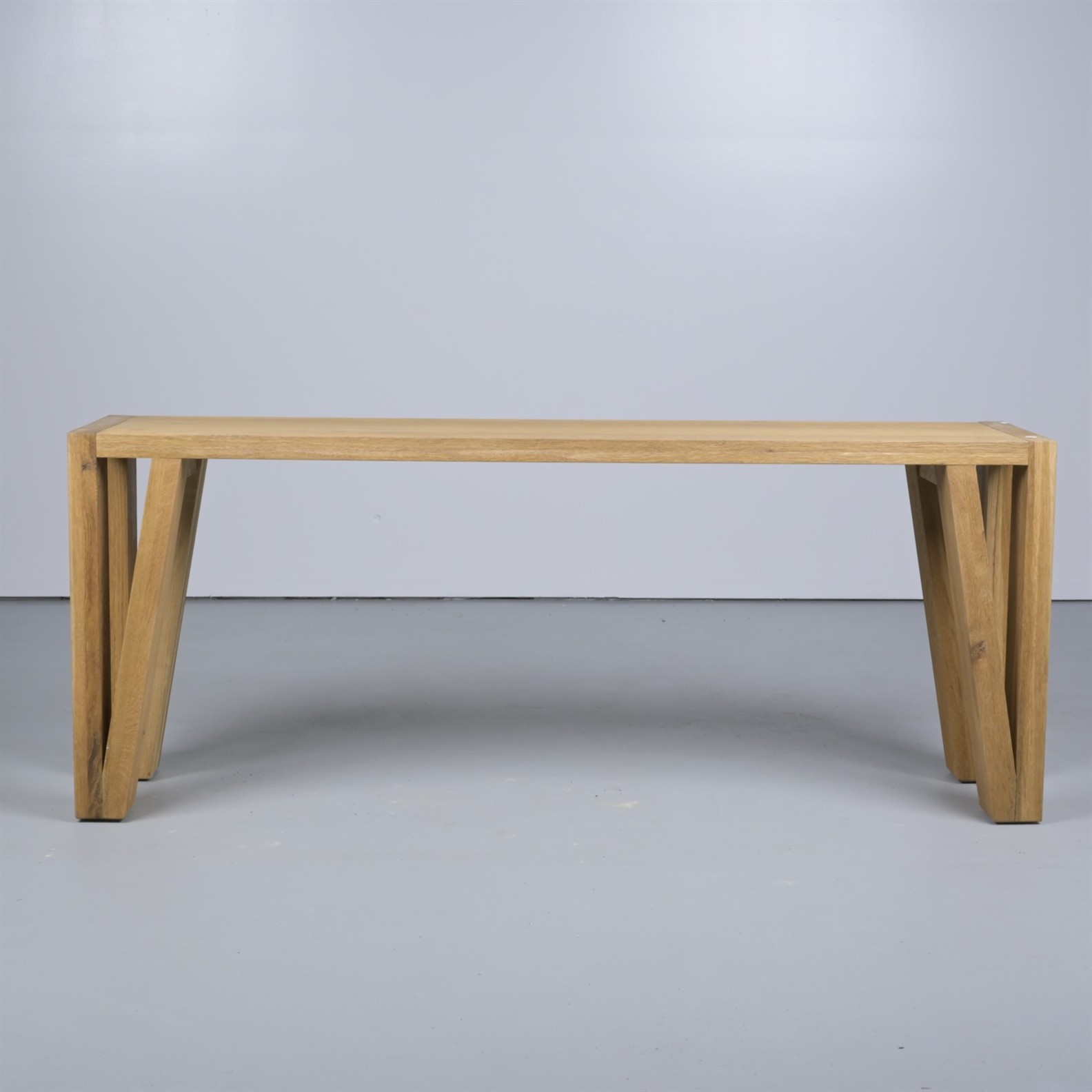 A HARDWOOD SIDE TABLE (81CM H X 200CM W X 46CM D) (THIS ITEM MUST BE REMOVED BY PROFESSIONAL CARRIERS OR CLIENTS. LEONARD JOEL STAFF CANNOT ASSIST WITH CARRYING OR DELIVERY OF THIS ITEM)