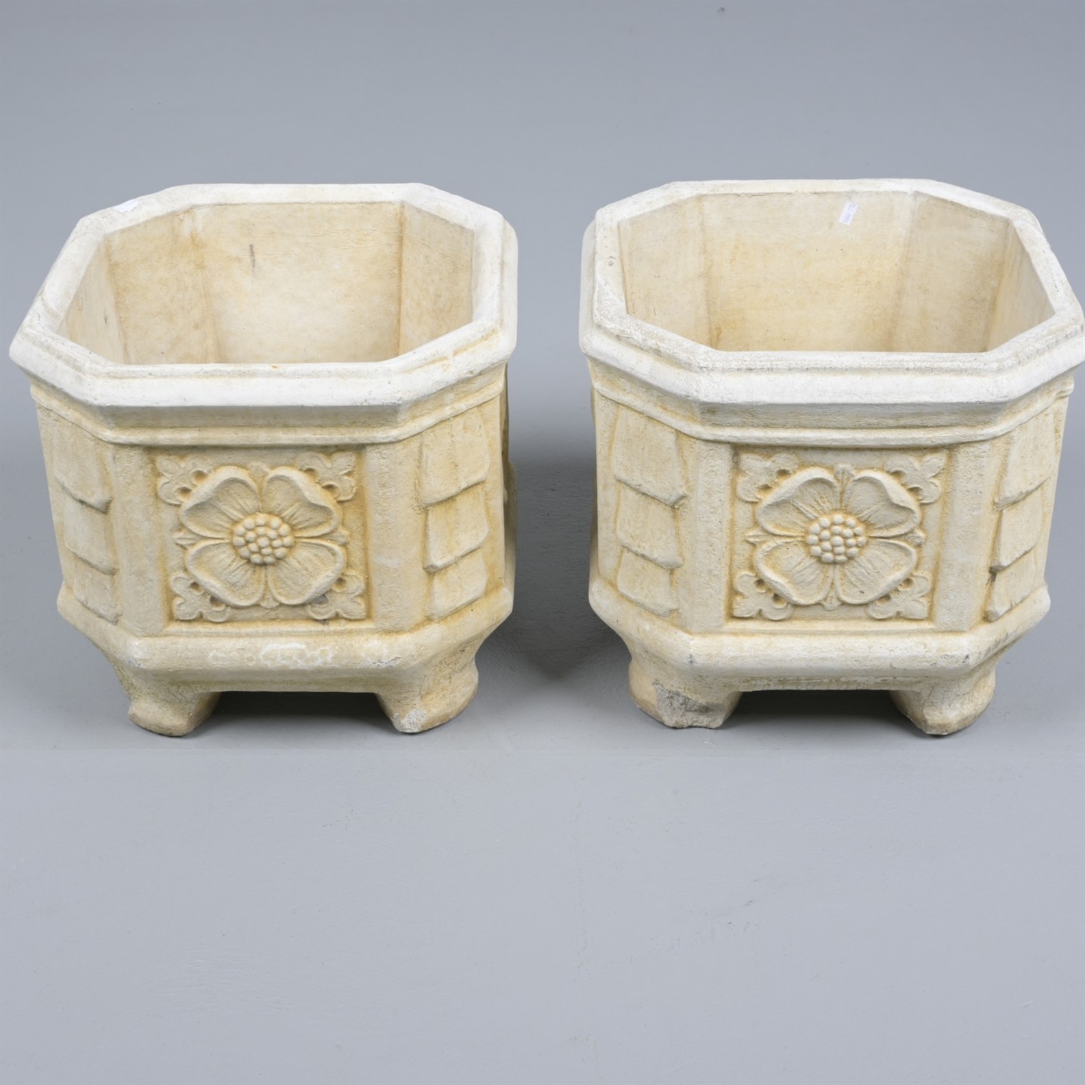 A PAIR OF LARGE SQUARE CONCRETE GARDEN PLANTER POTS (41CM H X 44CM W X 44CM D) (THIS ITEM MUST BE REMOVED BY PROFESSIONAL CARRIERS OR CLIENTS. LEONARD JOEL STAFF CANNOT ASSIST WITH CARRYING OR DELIVERY OF THIS ITEM)