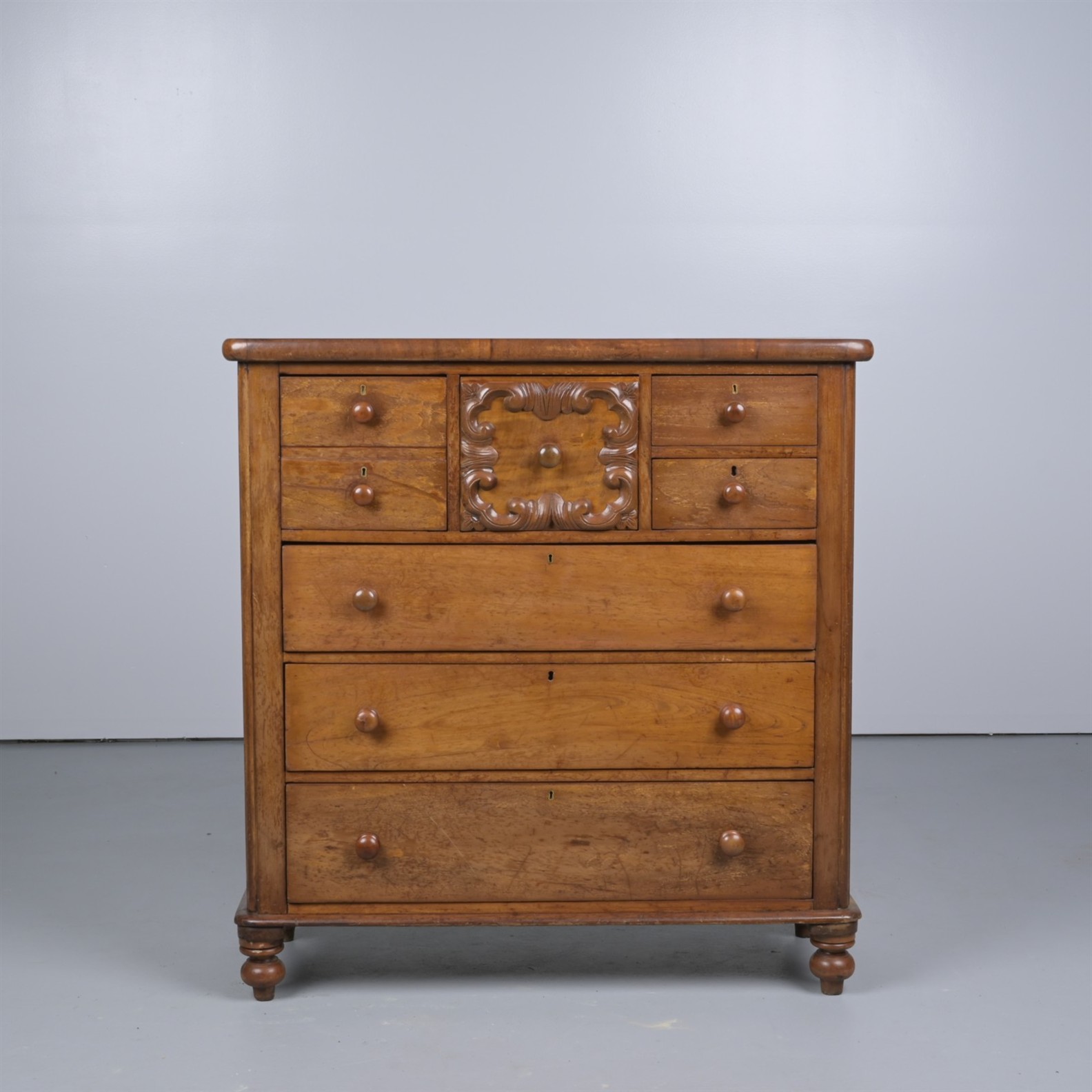 A VICTORIAN CEDAR CHEST OF DRAWERS (122CM H X 118CM W X 47CM D) (THIS ITEM MUST BE REMOVED BY PROFESSIONAL CARRIERS OR CLIENTS. LEONARD JOEL STAFF CANNOT ASSIST WITH CARRYING OR DELIVERY OF THIS ITEM)