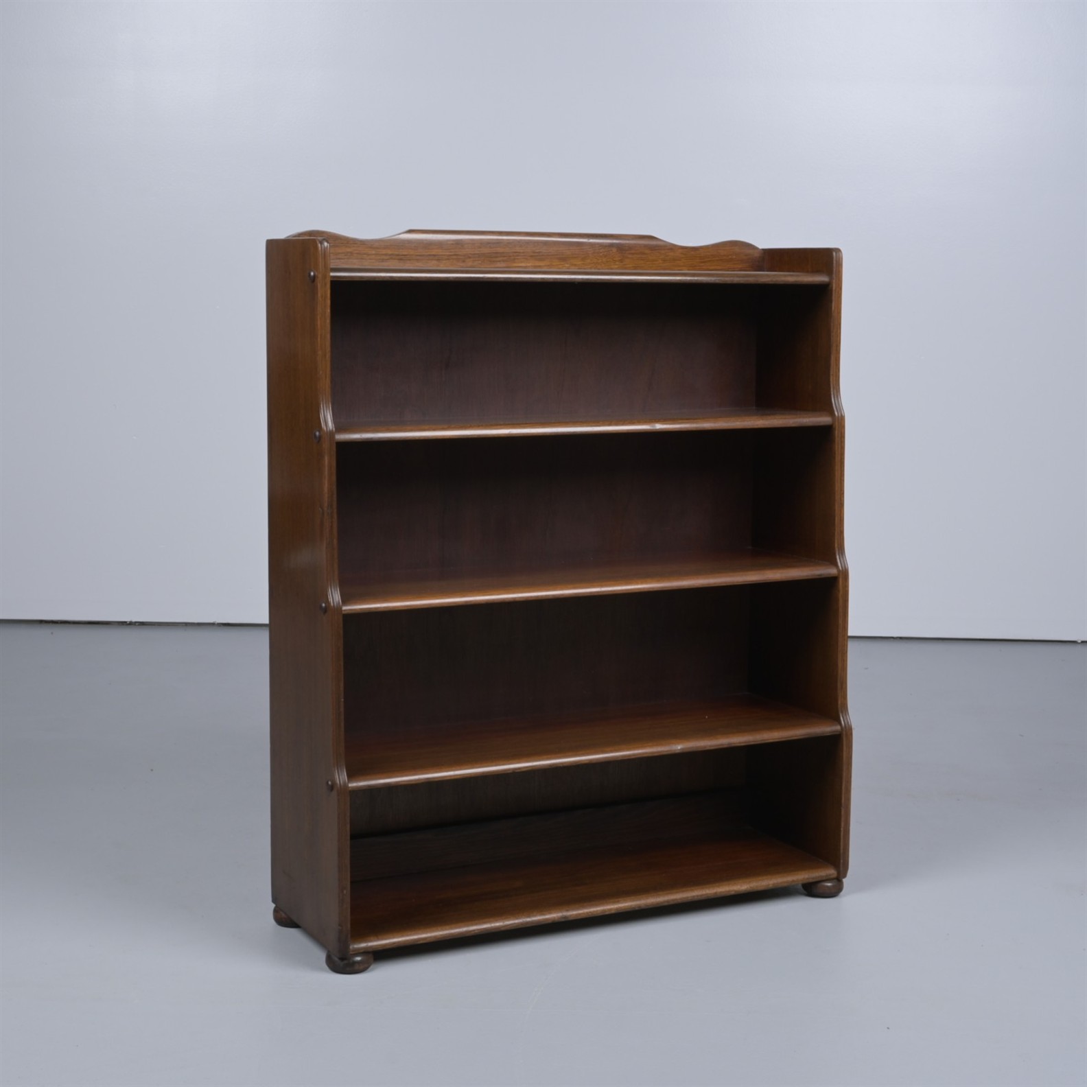 A HARDWOOD OPEN BOOKCASE (110CM H X 92CM W X 30CM D)