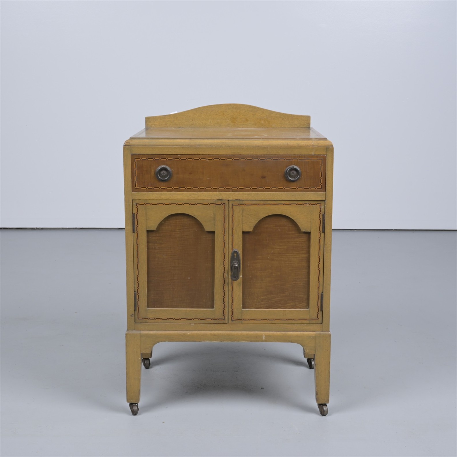 A MAHOGANY AND BEECH CABINET (A/F) (87CM H X 57CM W X 42CM D)