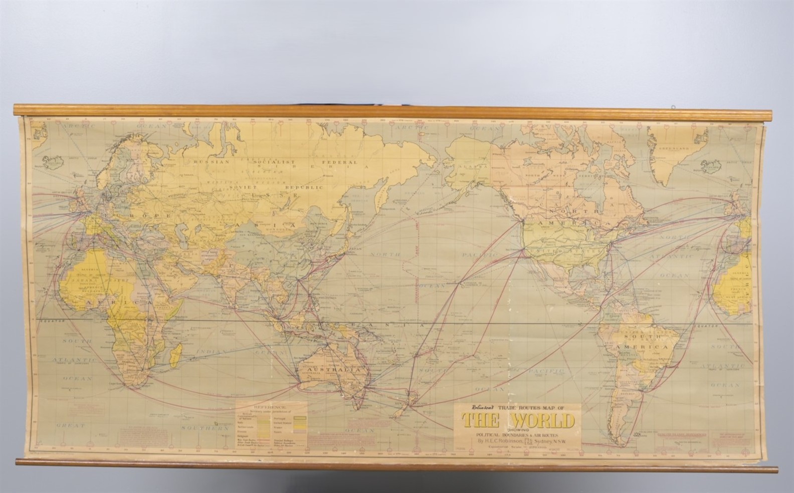 A LARGE WALL MAP OF THE WORLD (A/F)
