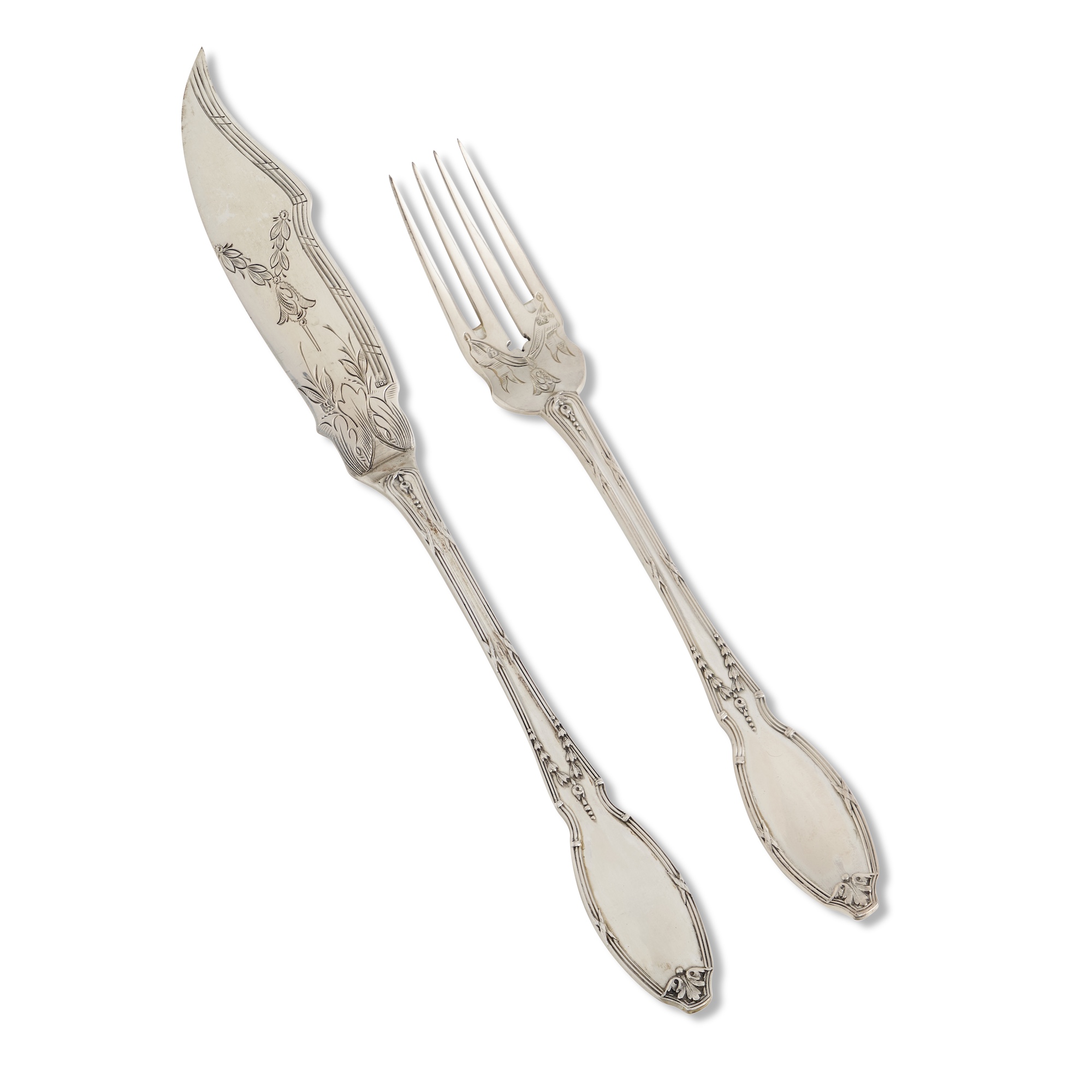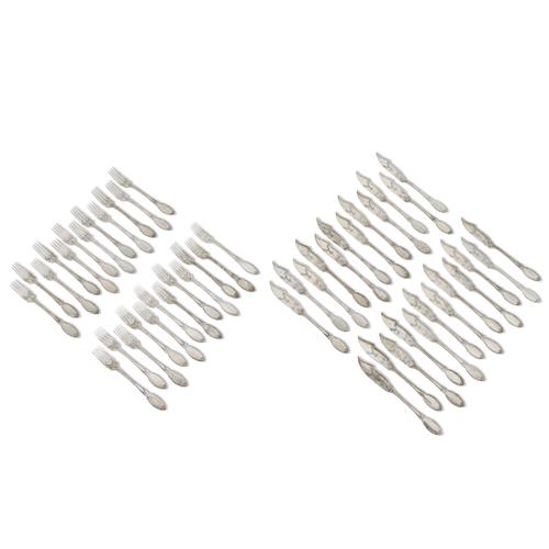 AN ANTIQUE BELGIAN SILVER FLATWARE SERVICE FOR FISH