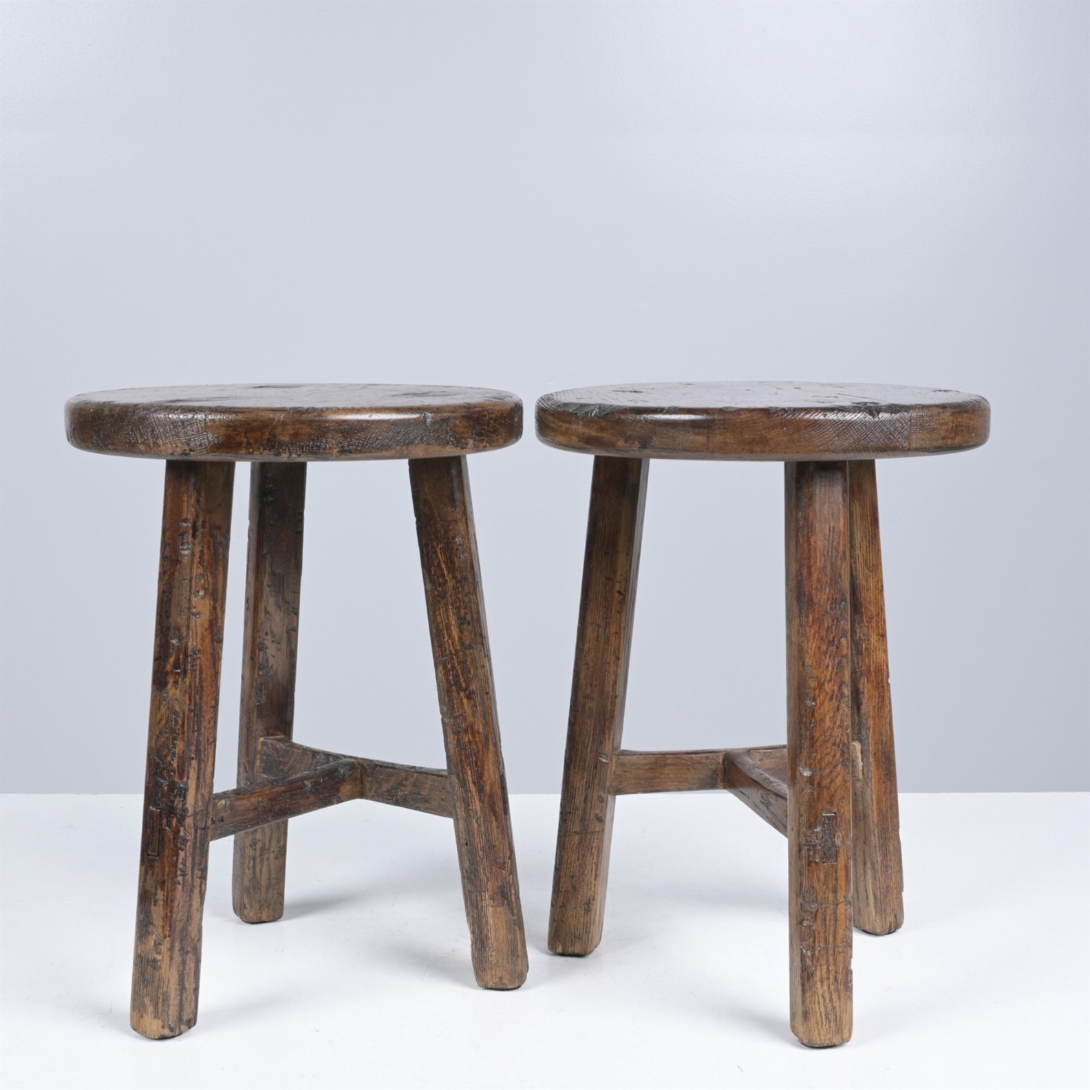 A PAIR OF FRENCH-STYLE MILKING STOOLS (42CM H X 30CM DIA)