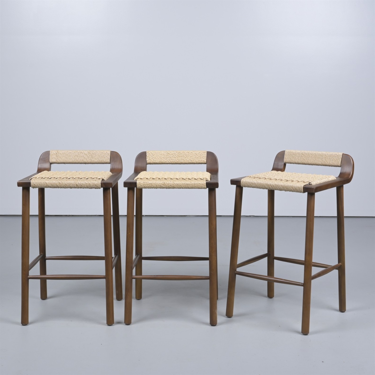 A GROUP OF THREE HARDWOOD BARSTOOLS (77CM H X 43CM W X 48CM D)