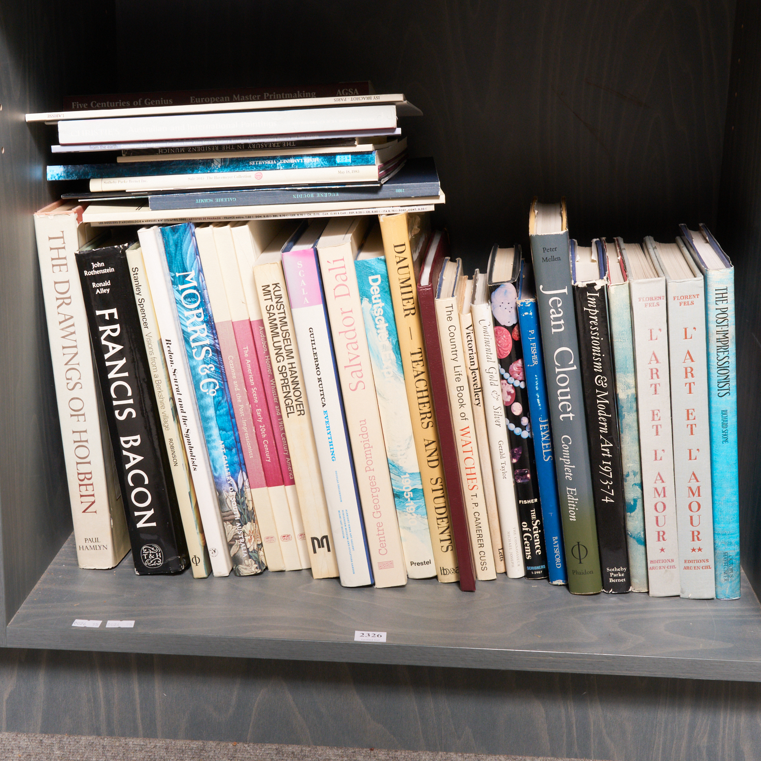 A SHELF OF EUROPEAN ART REFERENCE AND COLLECTING BOOKS AND CATALOGUES, INCLUDING BOOKS ON FRANCIS BACON, DALI, AND JEAN CLOUET