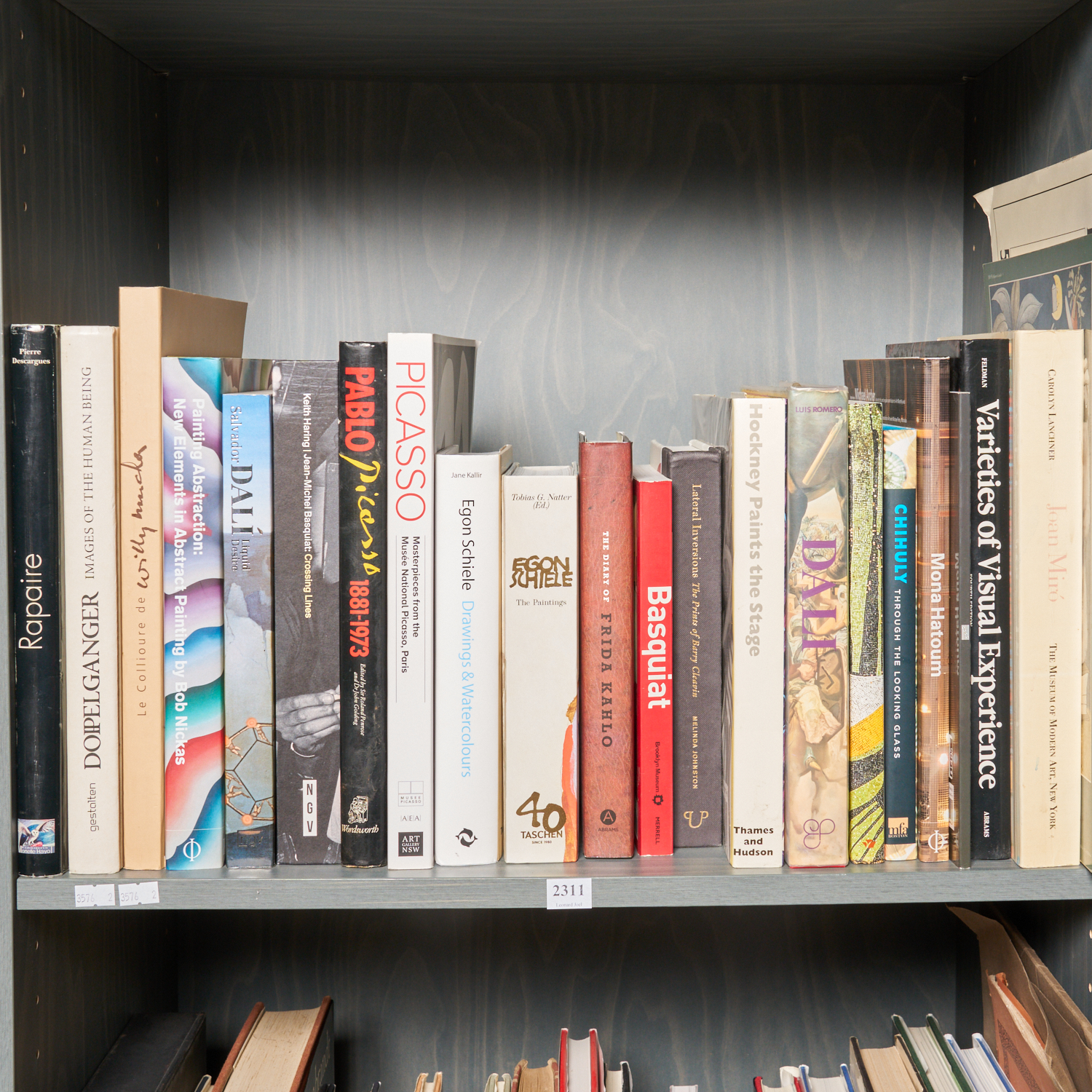 A SHELF OF 20TH CENTURY ART REFERENCE INCLUDING JOAN MIRO, HARING & BASQUIAT 'CROSSING LINES' (NGV), PABLO PICASSO 1881 - 1973, AND 'HOCKNEY PAINTS THE STAGE'