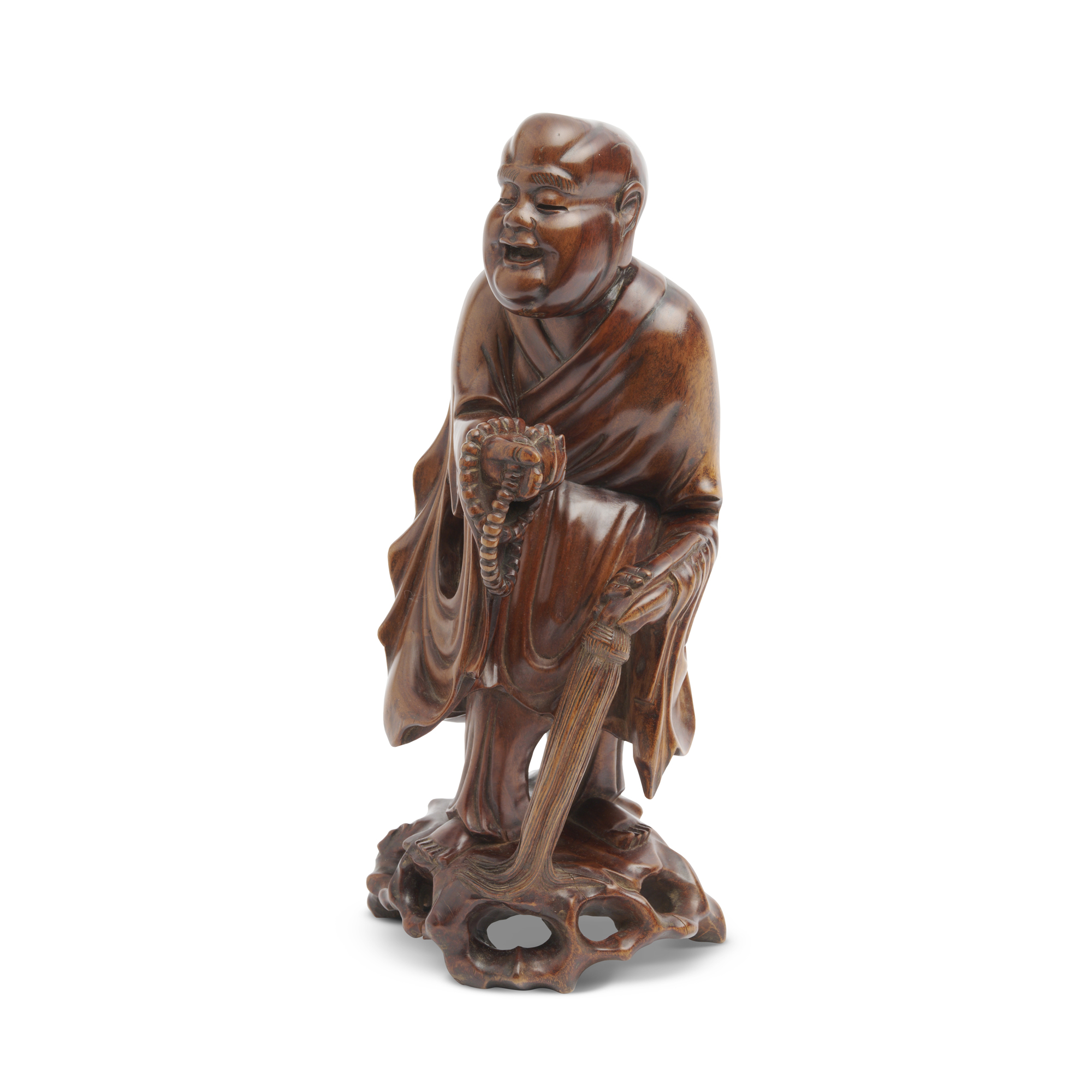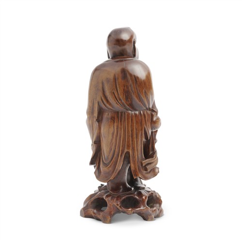 A CHINESE BOXWOOD CARVED FIGURE OF A STANDING LUOHAN, QING DYNASTY, 18TH/19TH CENTURY