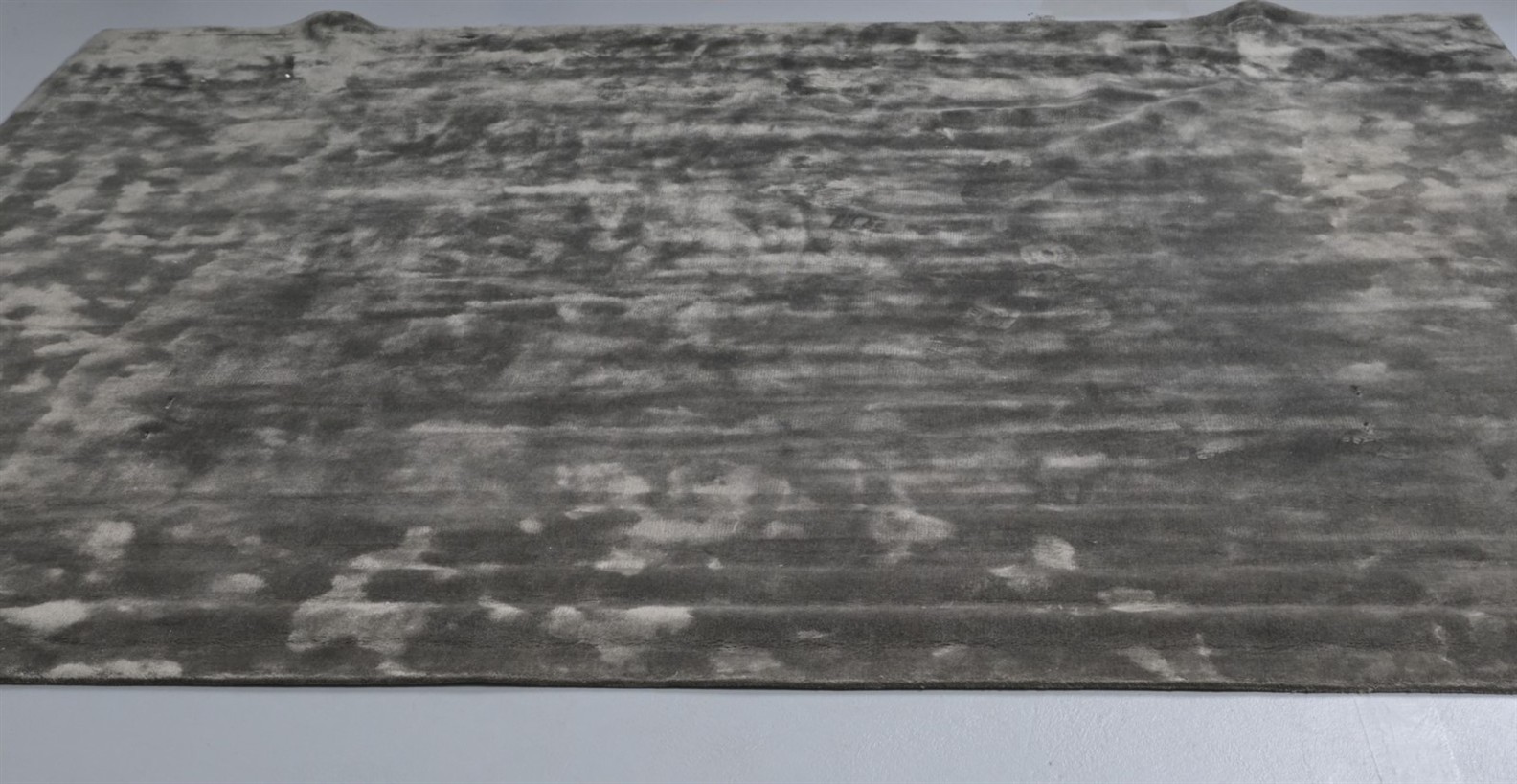 A LARGE CONTEMPORARY RC+D WOOL & VISCOSE CHARCOAL RUG (305CM L X 300CM W)